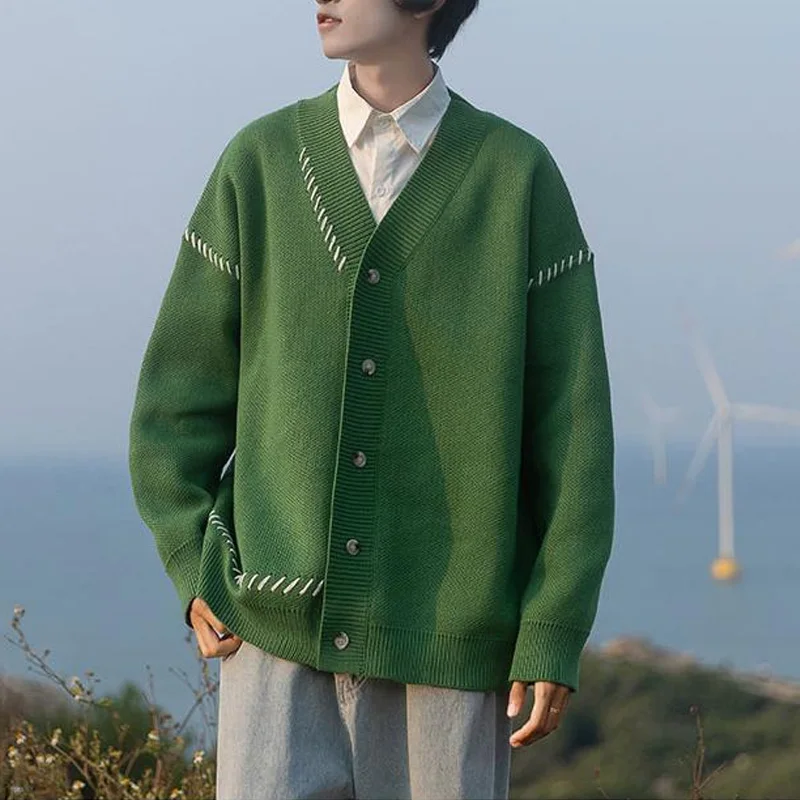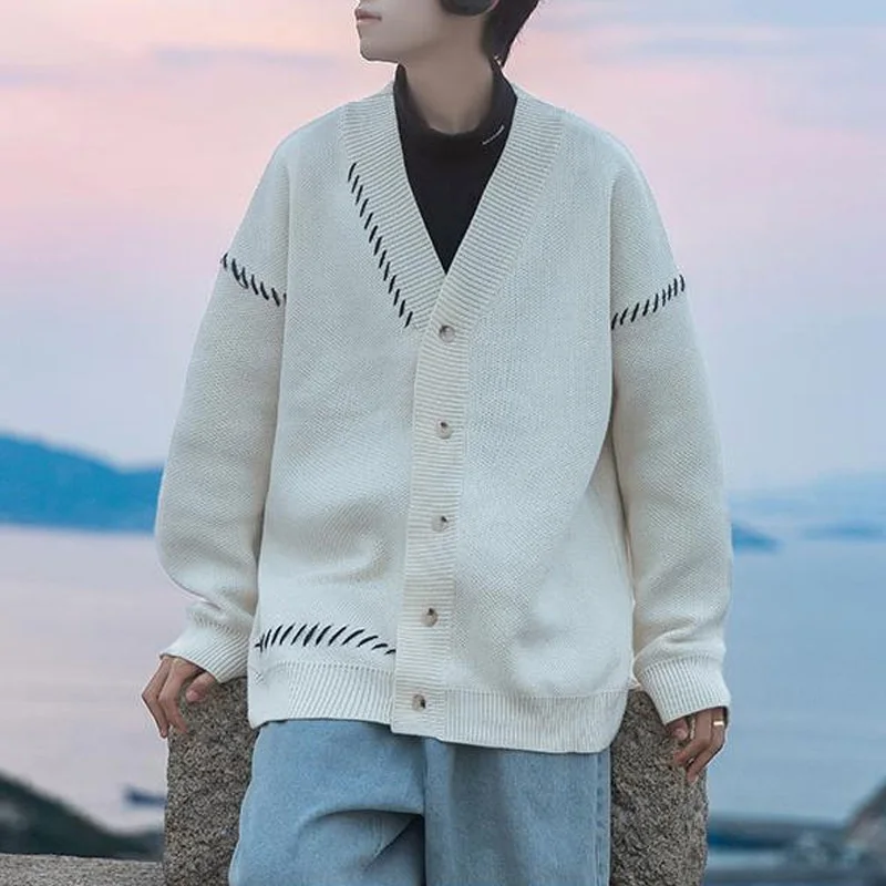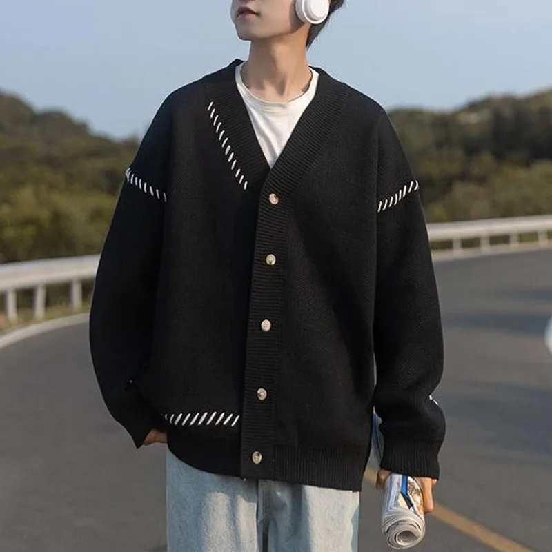 New Autumn and Winter Fashion Trend Handsome Open Thread Splice Casual Loose Lazy Style High Grade Couple Sweater Coat
