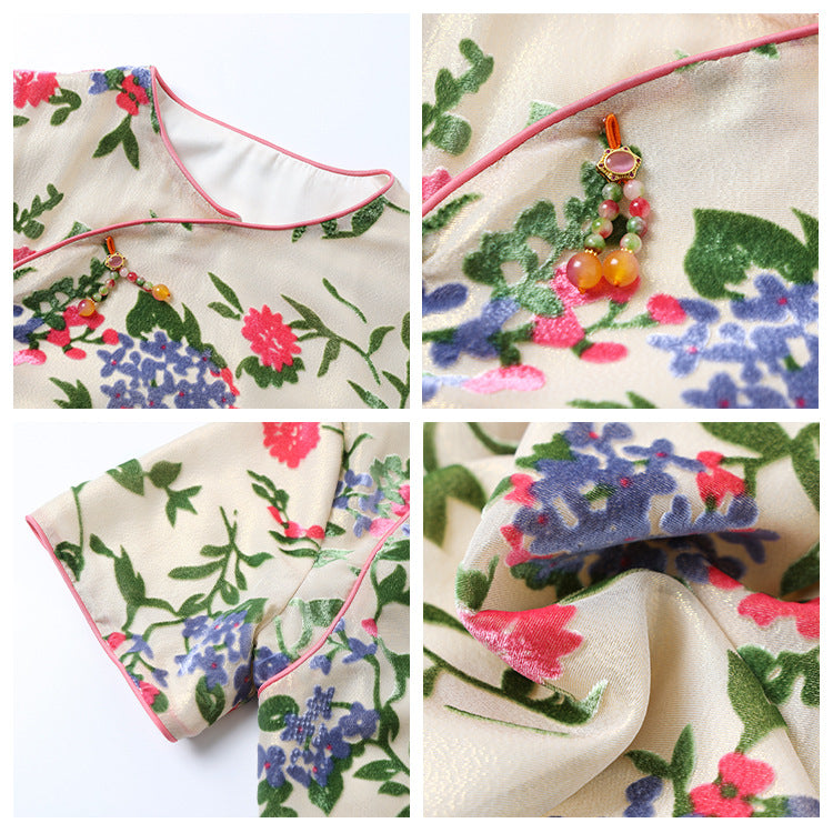 New Chinese style light national style burnt mulberry silk dress summer new temperament loose design short skirt M3113