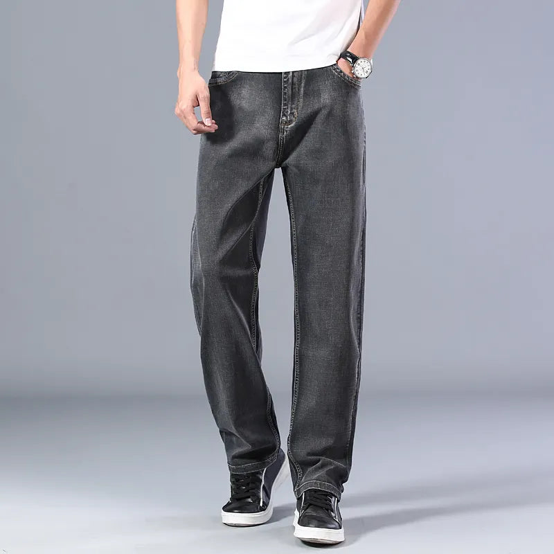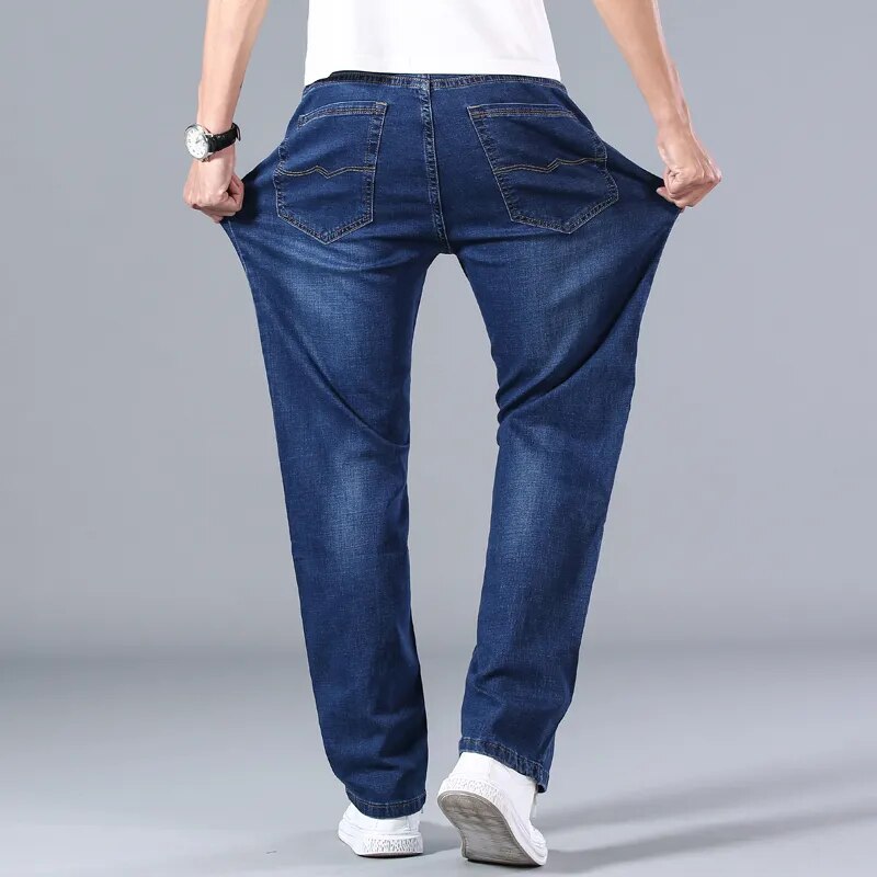 New Classic Men's Thin Blue Jeans Advanced Stretch Loose Straight Denim Trousers Male Brand Pants Plus Size 40 42 44