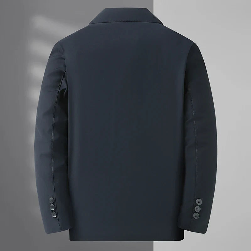 New Men's Fashion Slim Dad British Style with Solid Color Business Casual Gentleman Middle-aged and Elderly Lapel Coat Jacket