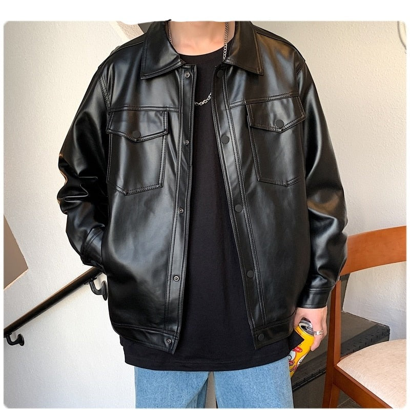 saferido Men Spring Black Soft Faux Leather Jacket Mens Hip Hop Jacket Leather Male Oversize Streetwear Pockets Clothes