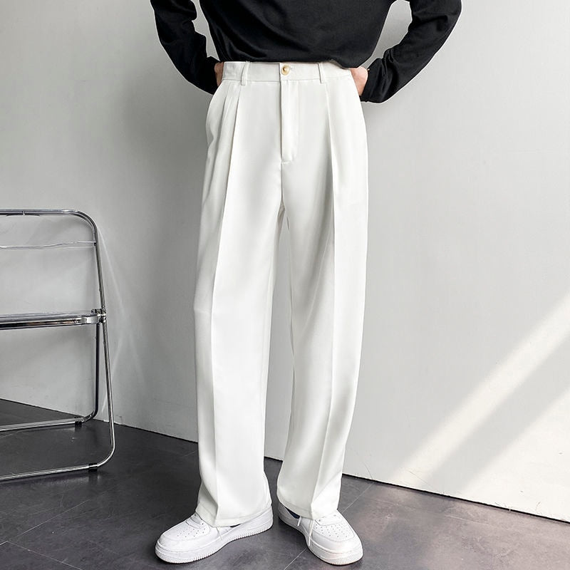 White Solid Men's Wide Leg Suit Pants Casual Fashion Brand Male Trousers Baggy Korean Style Pants Clothing