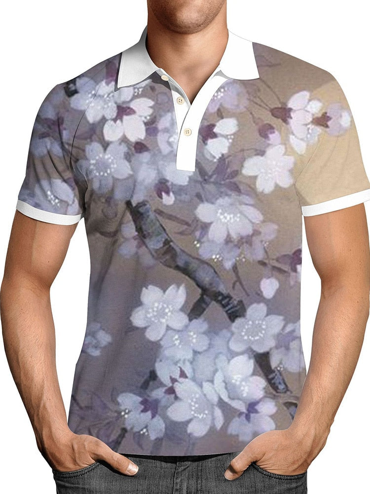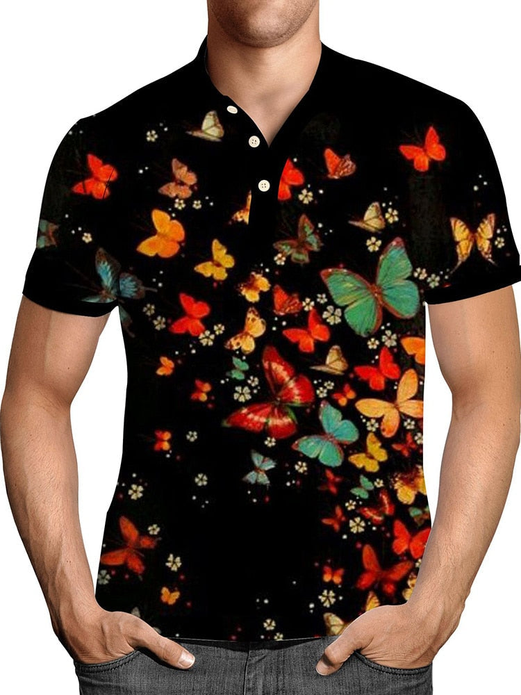 Pullover Tops Mens Fashion Turn-down Collar Button-up Polos Vintage Print Polo Shirt Men Summer Short Sleeve Casual shirts