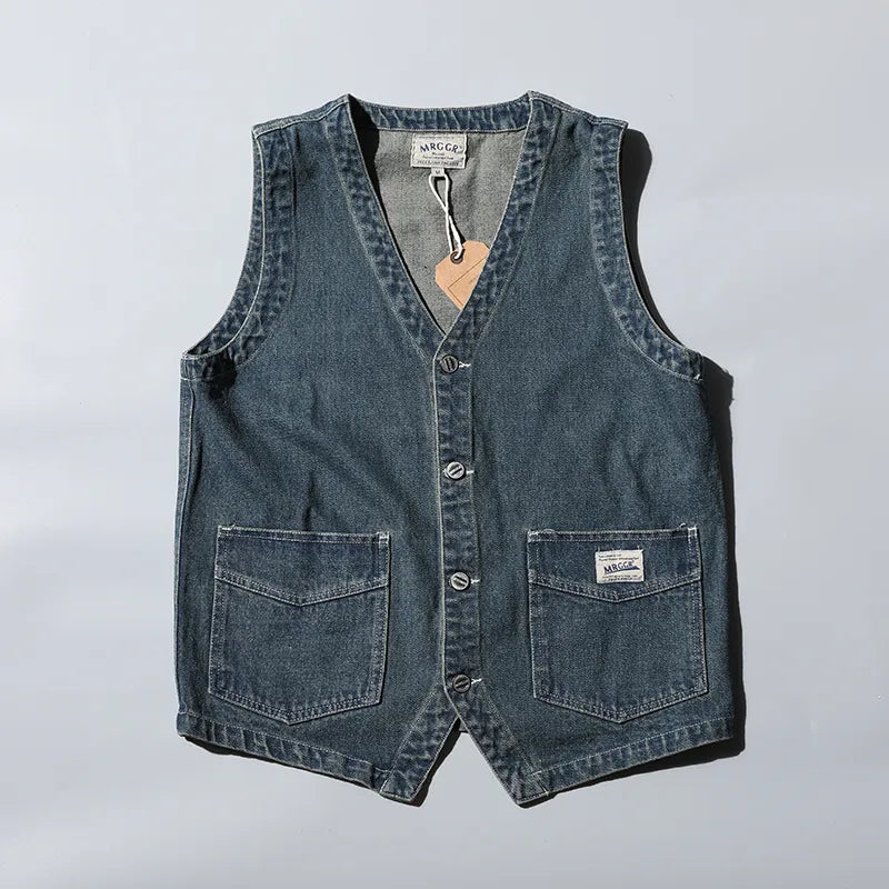Retro Denim Vest Men Sleeveless Cargo Harajuku Style Tooling Jean Jacket Cowboy Fashion Wasitcoat Men'S Clothing