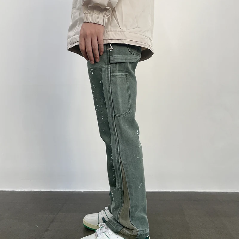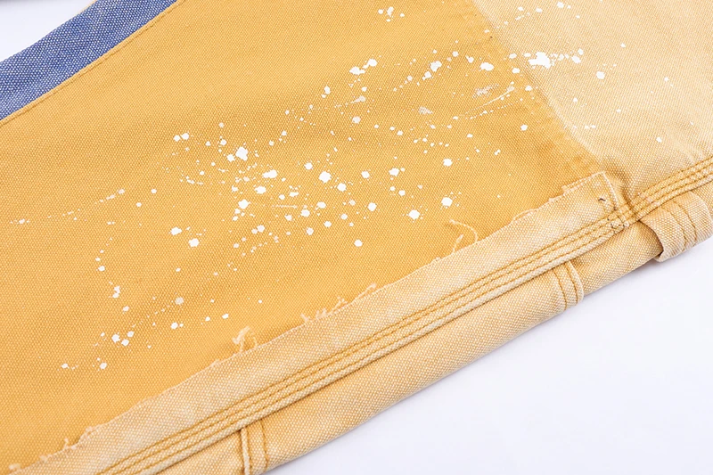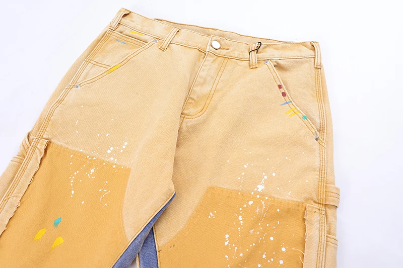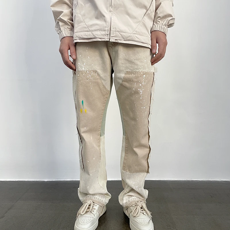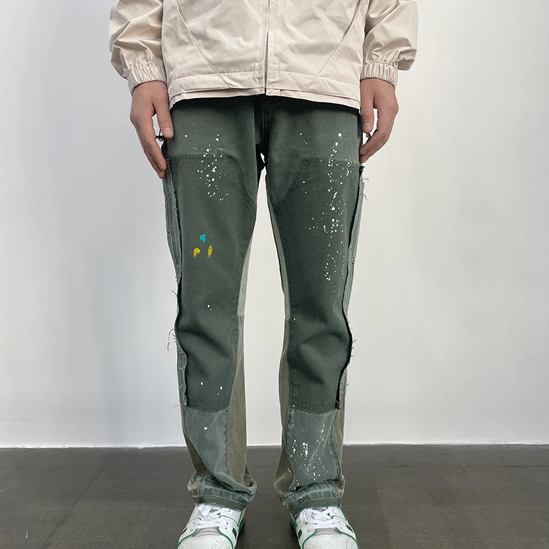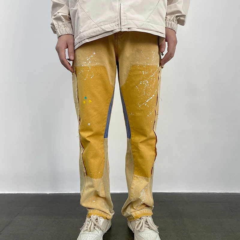 Retro Hip Hop Splash Ink Slim Jeans Distressed Colored Patchwork Denim Jean Men High Street Fashionable Graffiti Denim Trousers