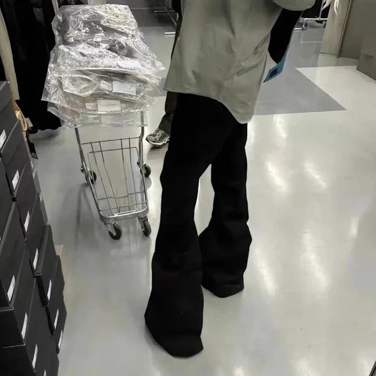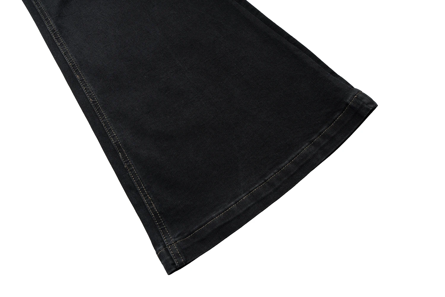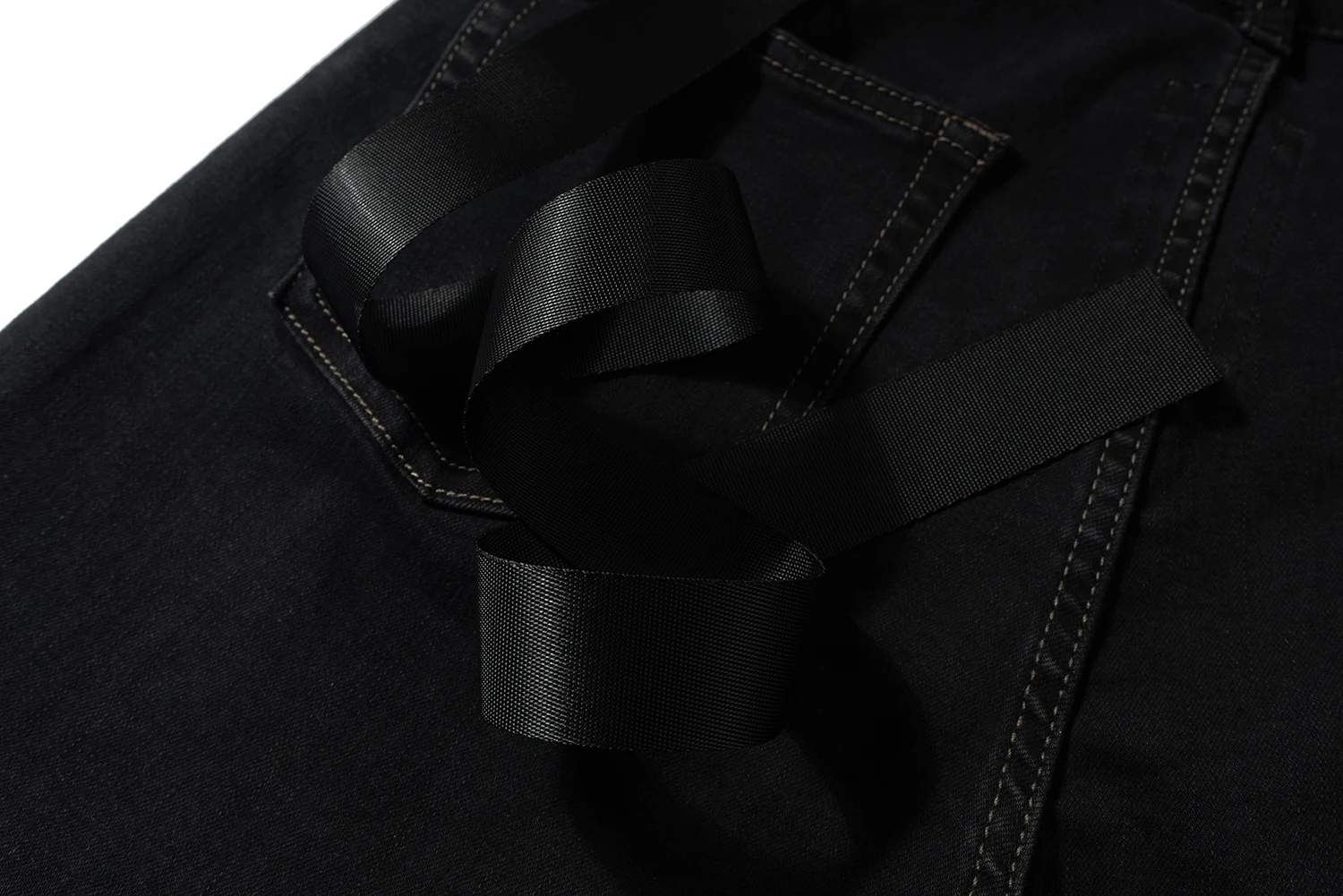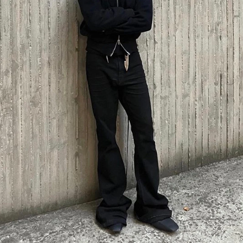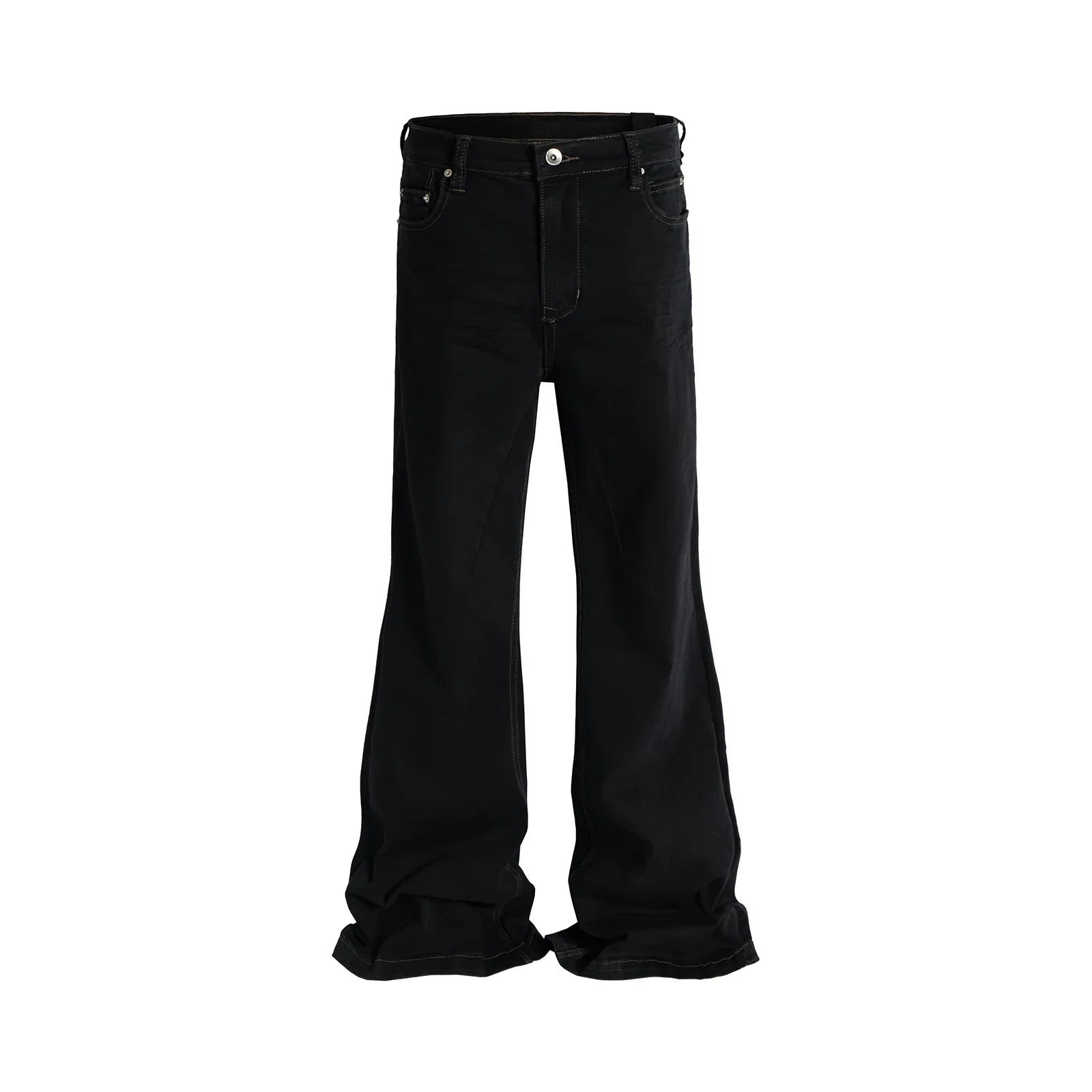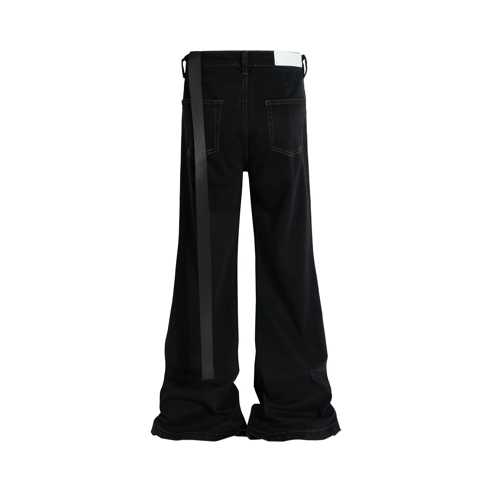 RO Style Ribbons slightly Stretch Baggy Flared Jeans for Men High Street Black Color Boom Cut Oversized Casual Denim Trousers