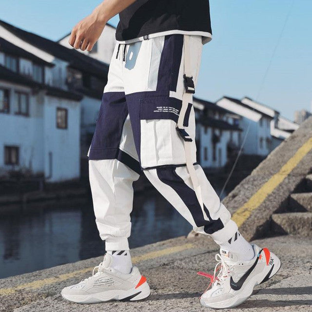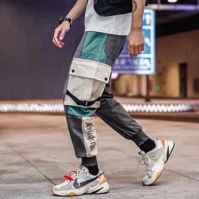 Cargo Pants Men Solid Color Black Loose Casual Jogger Pocket Elastic waist Ankle Length Trousers Techwear
