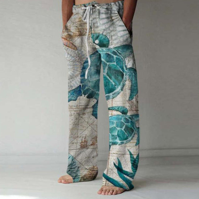 Autumn Vintage Skull Print Loose Straight Pant Men Summer New Fashion Trousers Street Hipster Casual Pants Mens Streetwear