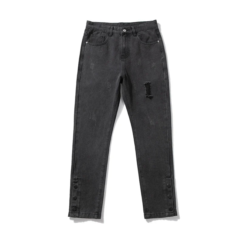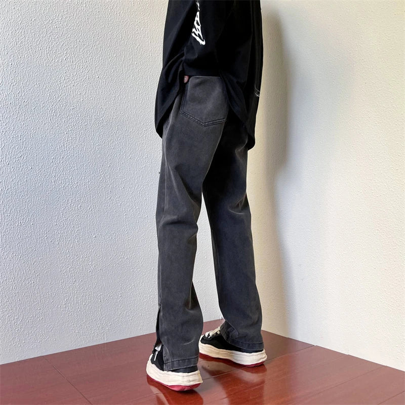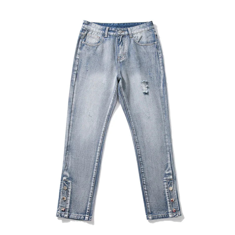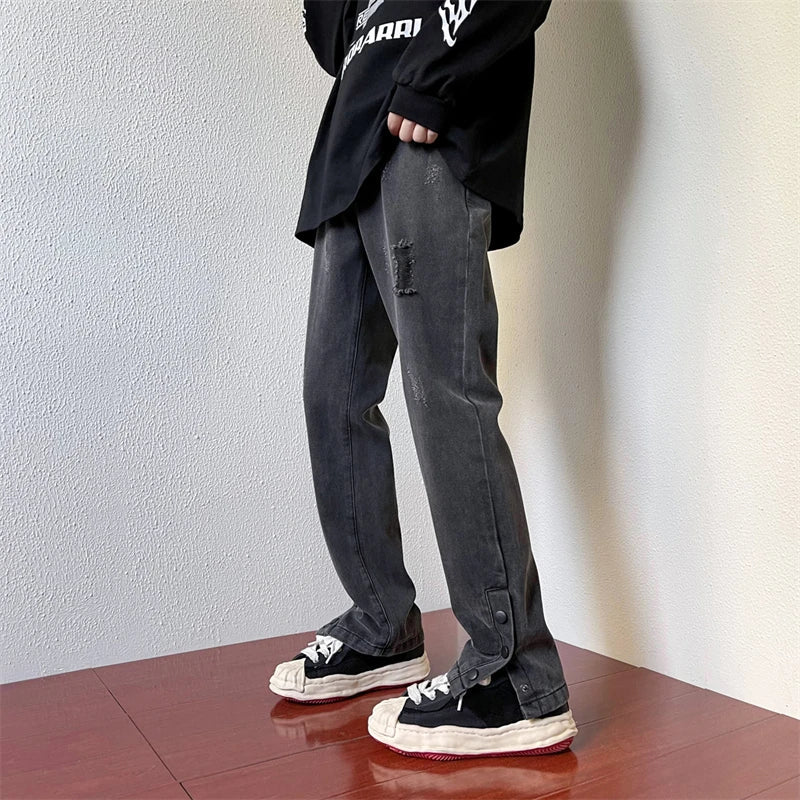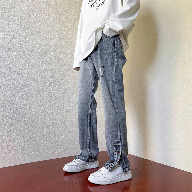 saferido 2024 Spring New Streetwear Men's Slim Fit Vintage Blue Skinny Jeans Korean Fashion Side-breasted Slit Hole Denim Pants Male