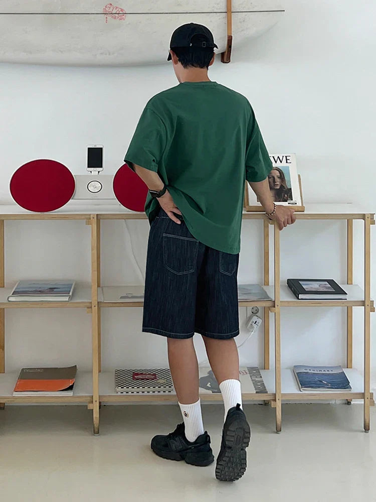saferido 2024 Summer New Men's Denim Shorts Korean Style Elastic Waist Design Straight Trend Fashion Loose Casual Pants