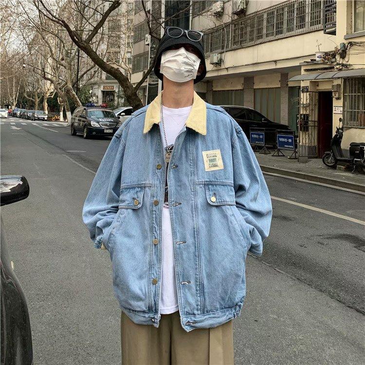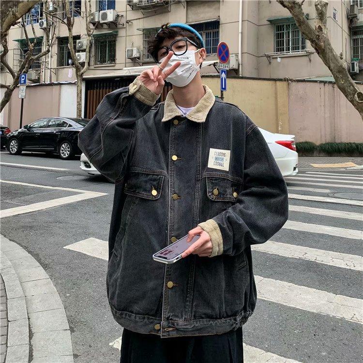 90s fashion men American Retro Denim Coat for Boys Spring and Autumn New Loose All-Match Fashion Handsome Casual Workwear Jacket