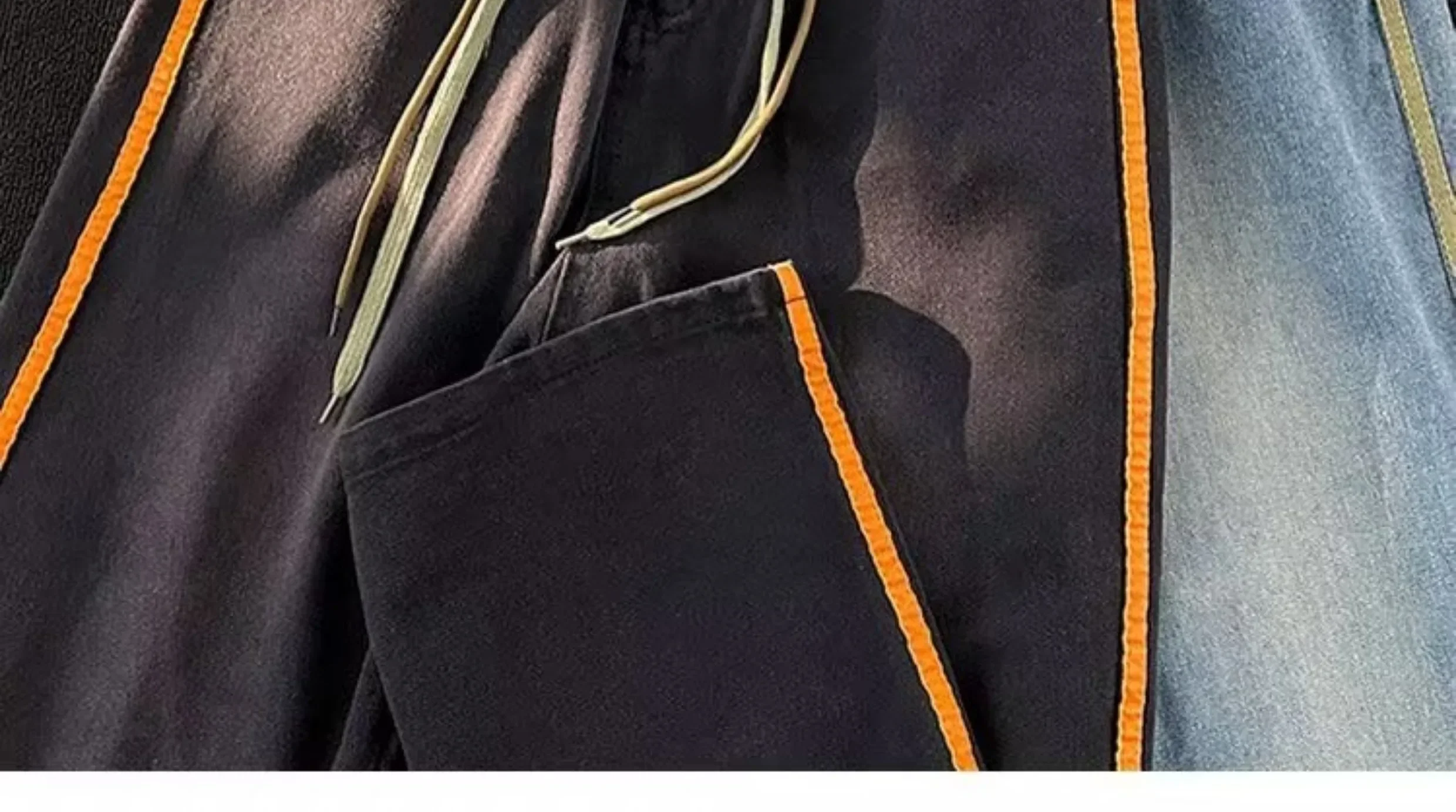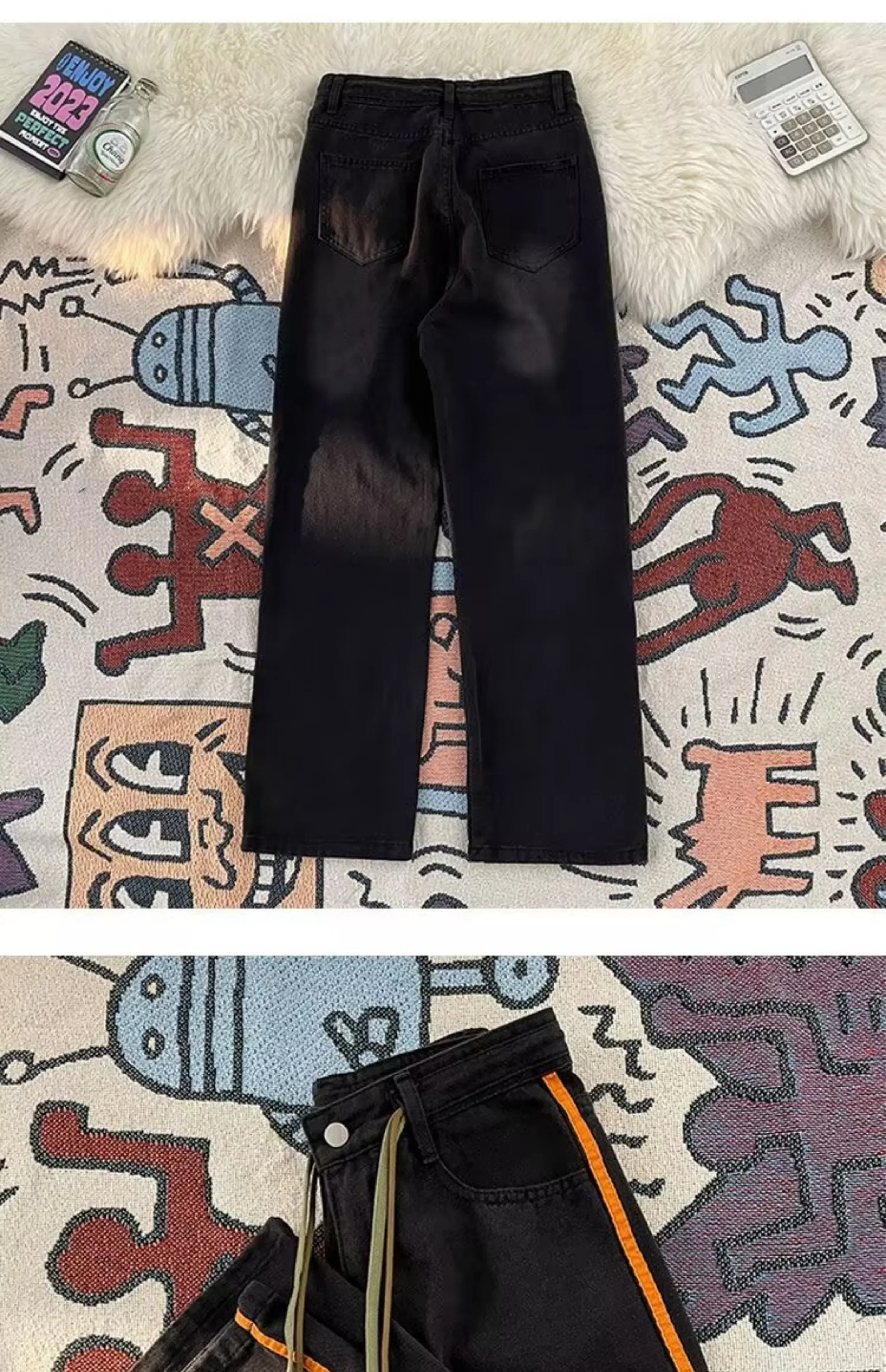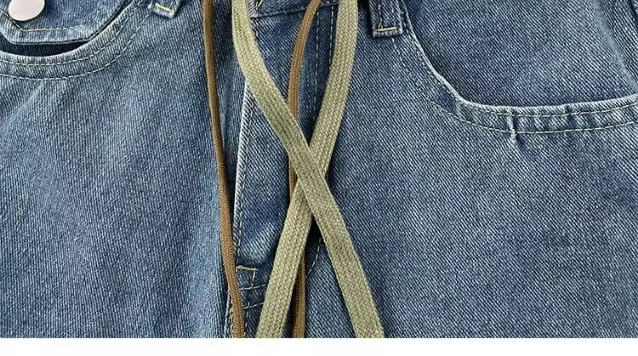saferido American Retro Drawstring Jeans Men's High Street Causal Loose Straight Draping Wide Leg Pants Men Trousers Male