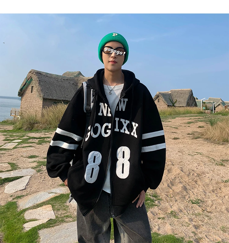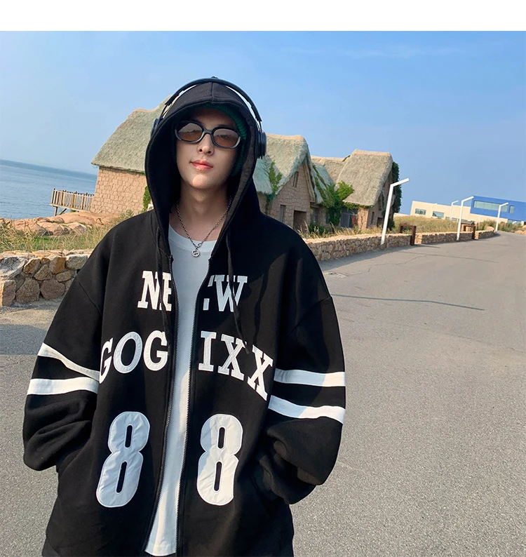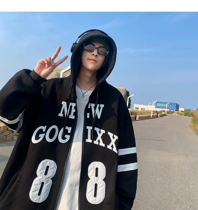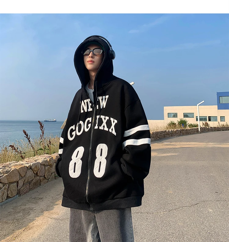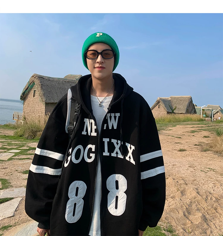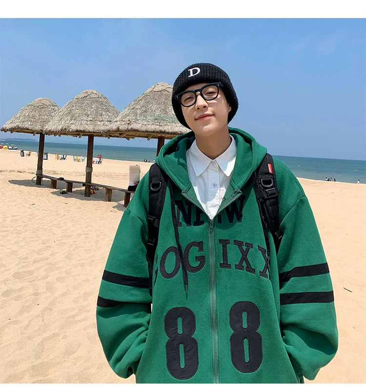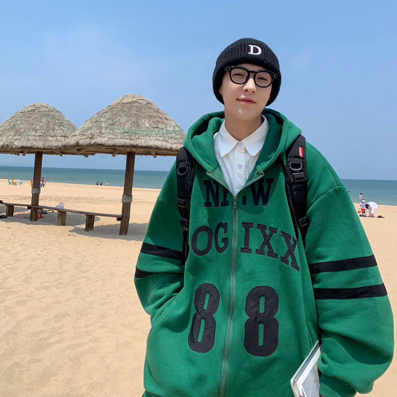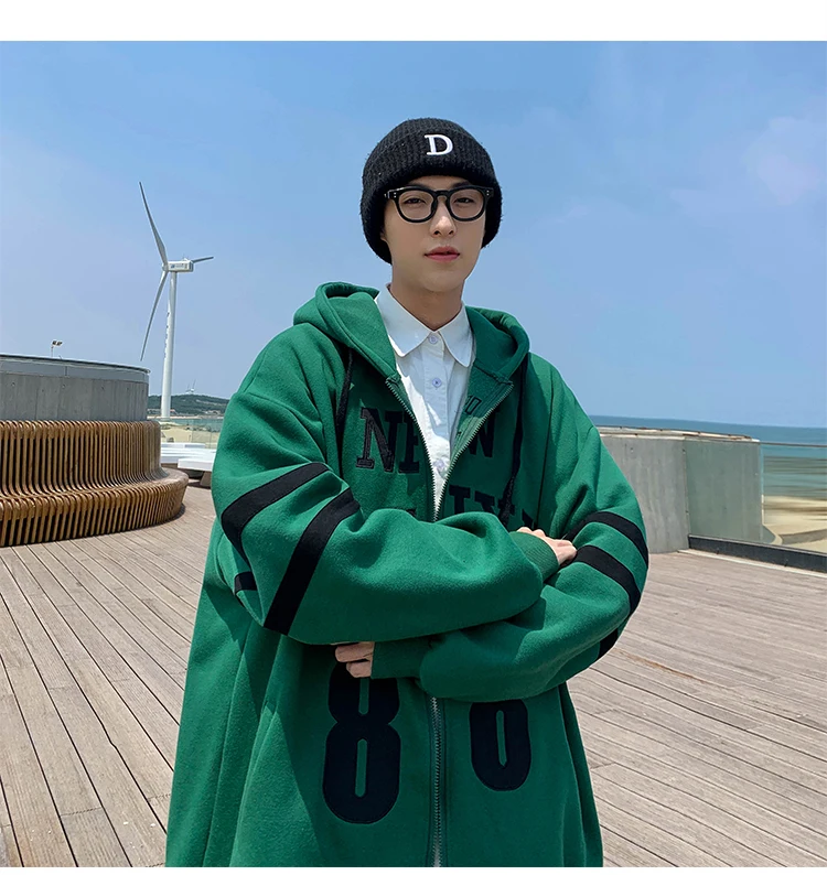 saferido American retro hoodies jacket for men Letter print Hooded Sweatshirt Baggy Zipper Hoodie Coat Green hoodies Men/Women Outwear