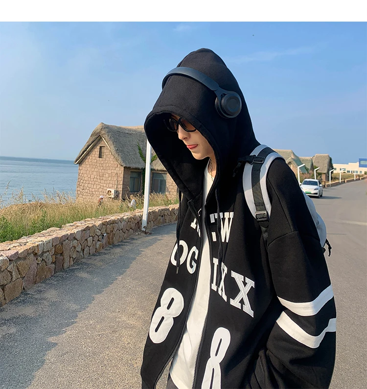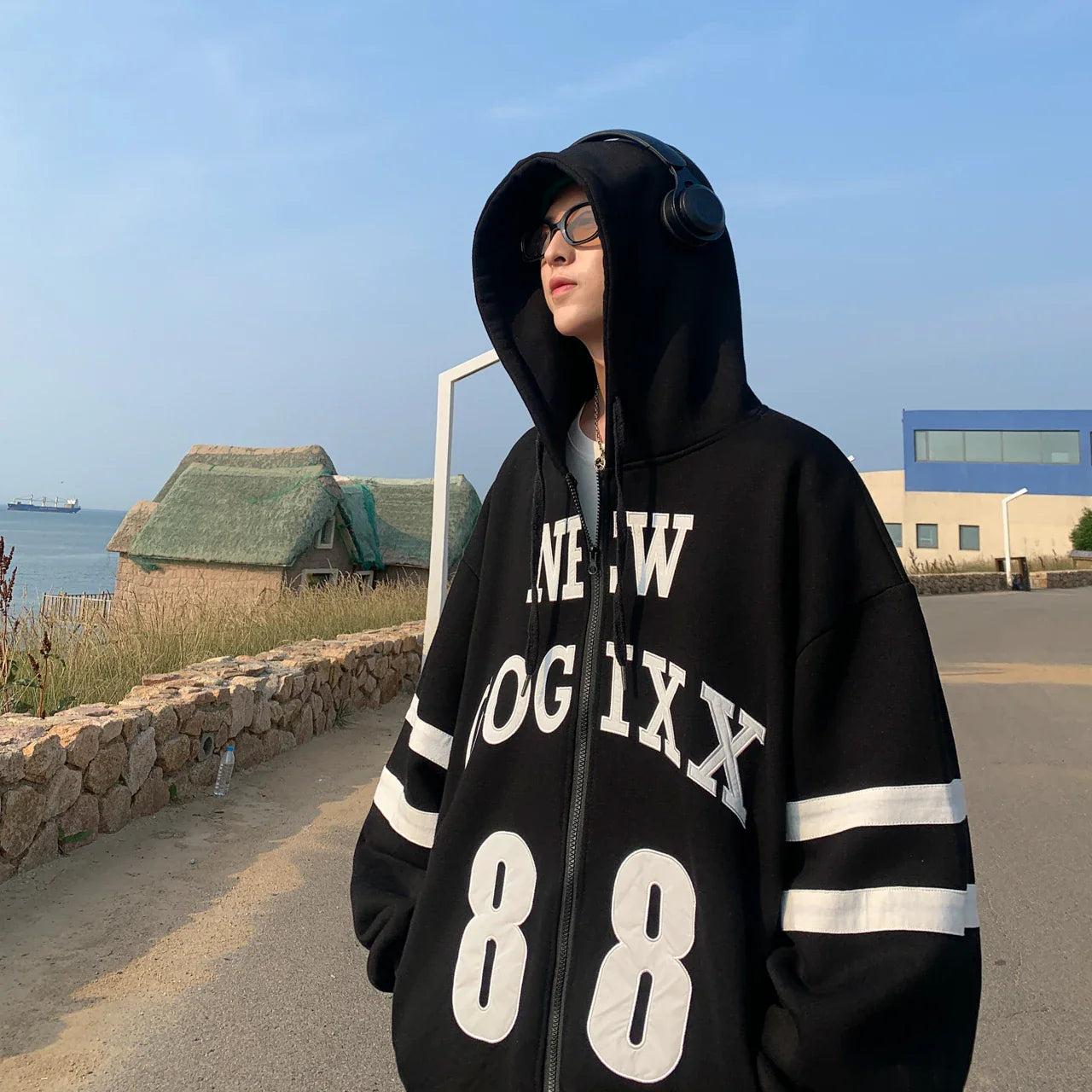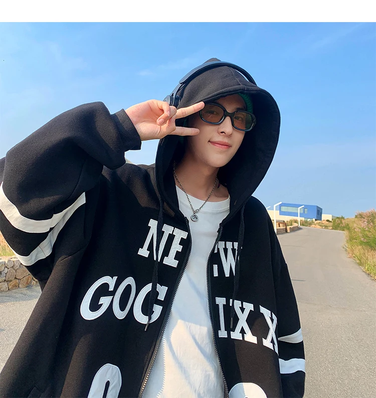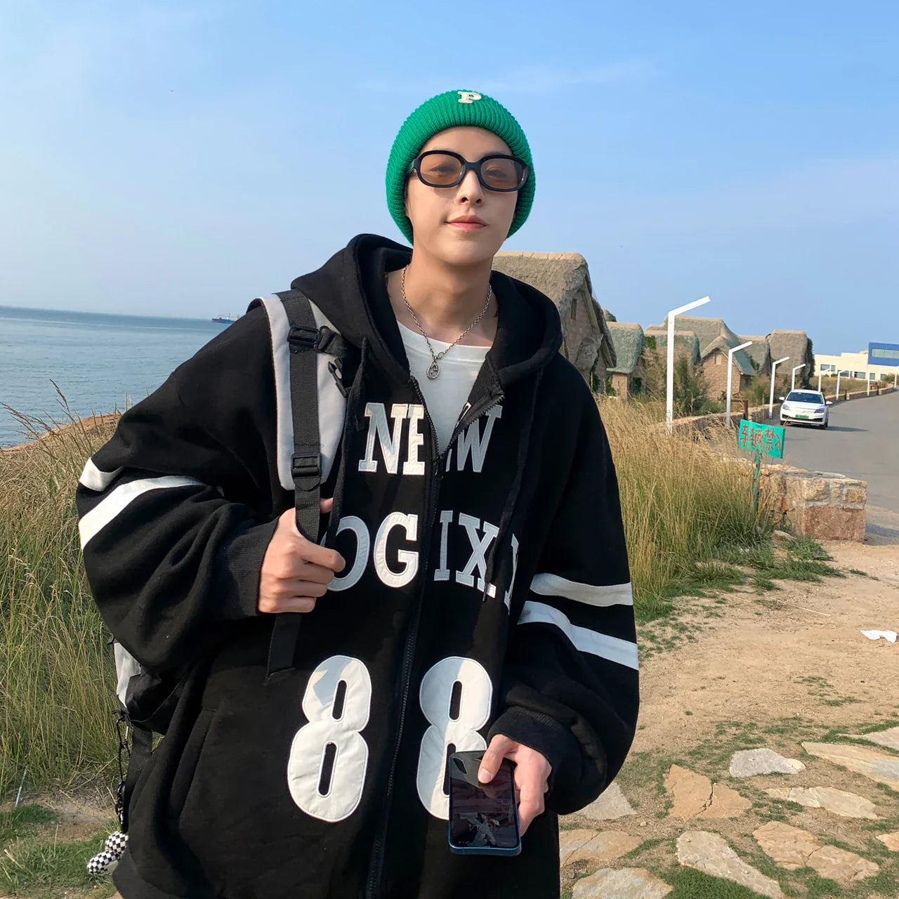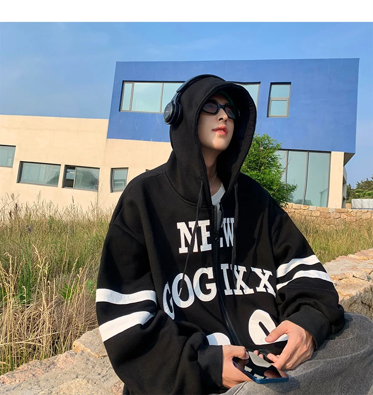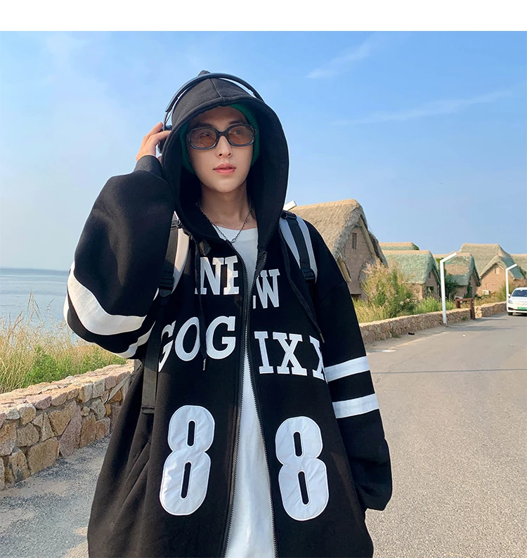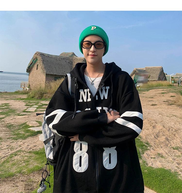 saferido American retro hoodies jacket for men Letter print Hooded Sweatshirt Baggy Zipper Hoodie Coat Green hoodies Men/Women Outwear