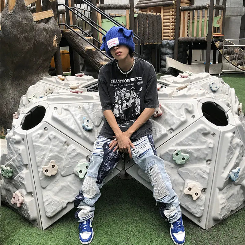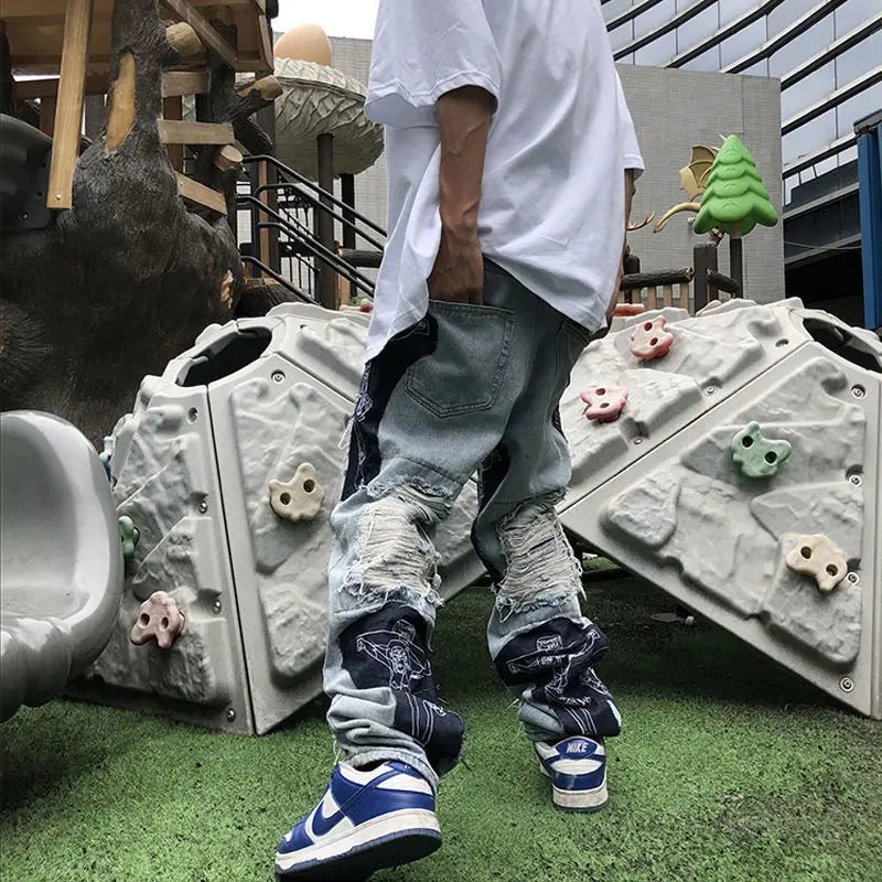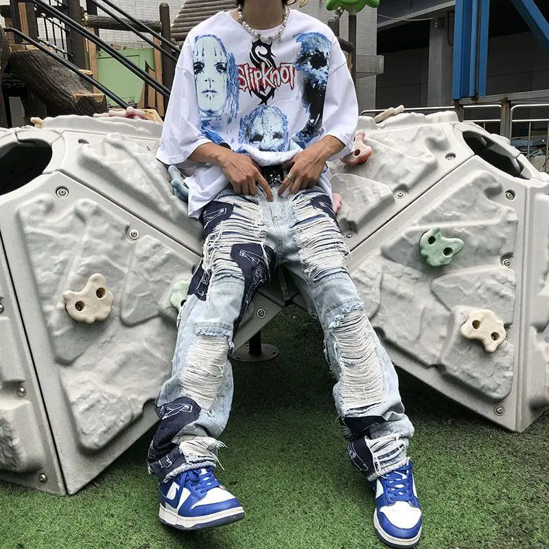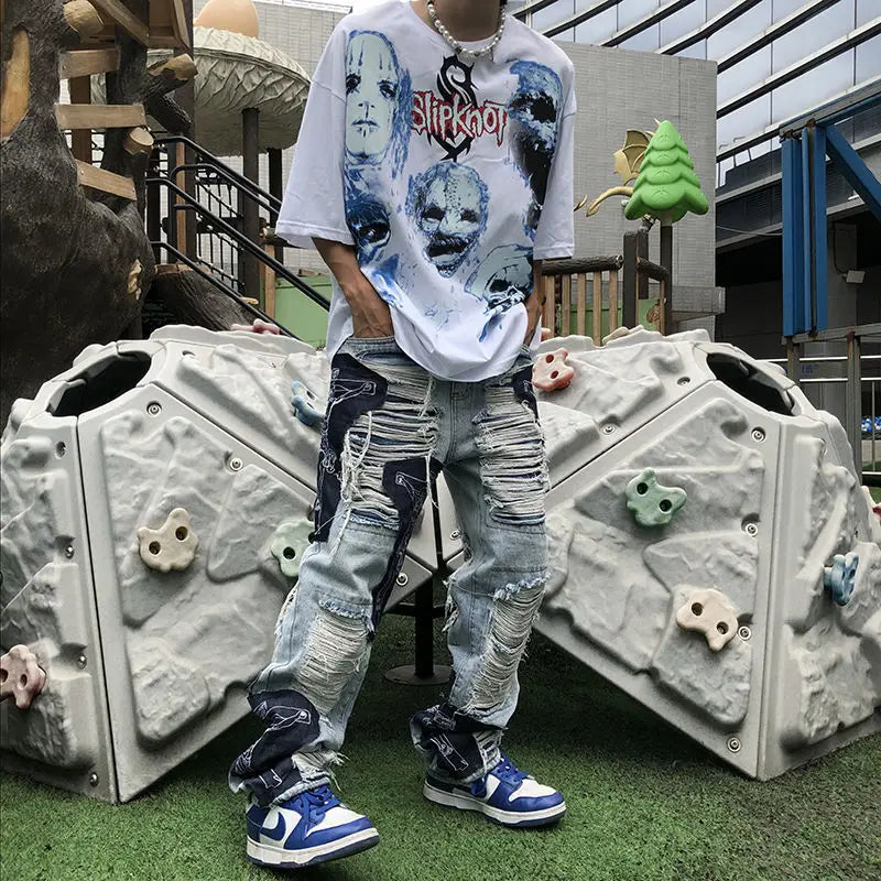 saferido American style high street washed distressed loose jeans for men and women straight leg personalized hip-hop casual pants y2k