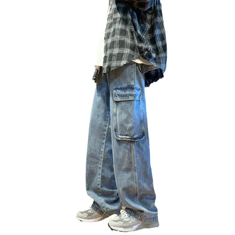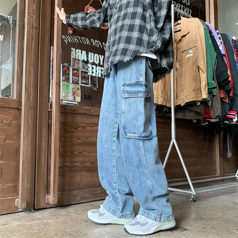saferido American Style Jeans Men's Loose Fitting High Street Trendy Drape Fashionable Washed Straight Leg Pants Versatile Workwear Pants