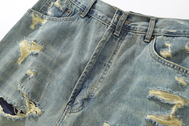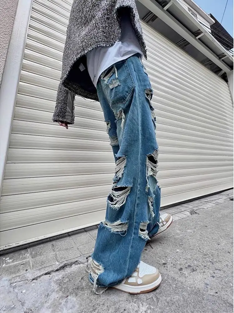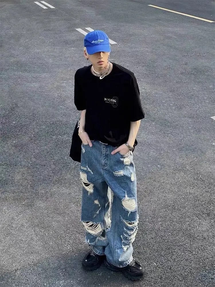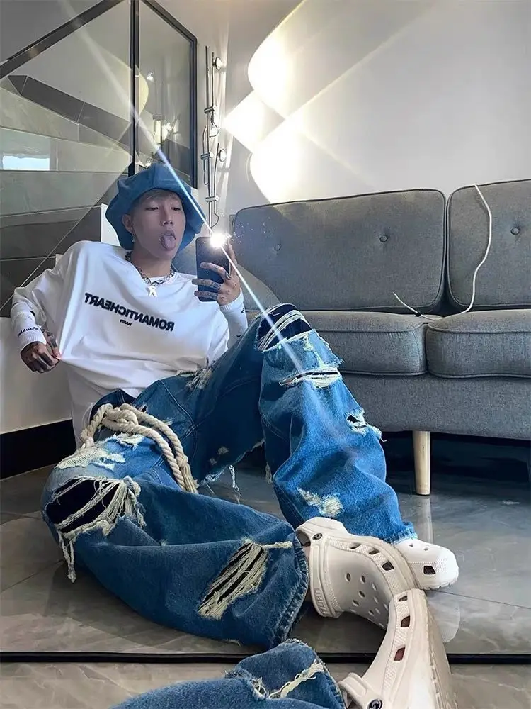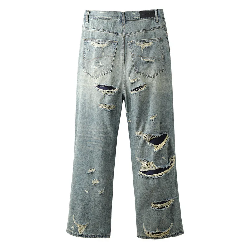 saferido American Style Streetwear Washed Torn Jeans For Men And Women's Street Hip-Hop Loose Wide Leg Straight Leg Pants Fashion Style