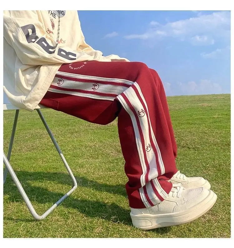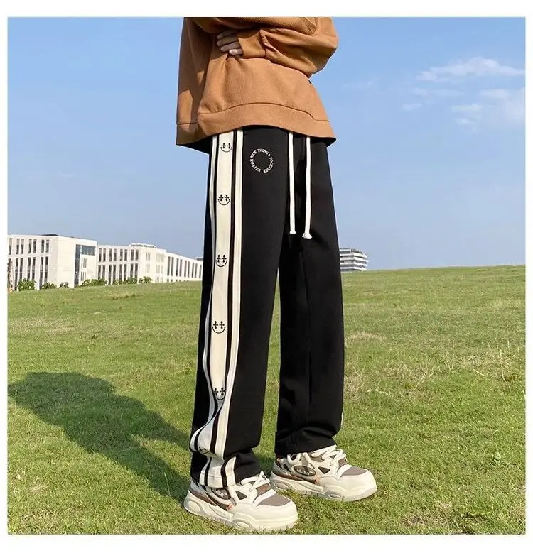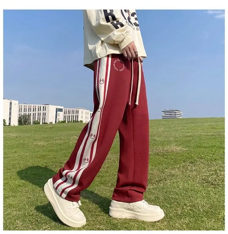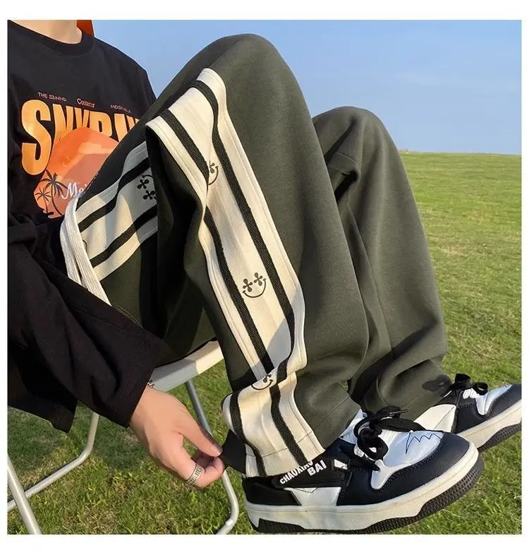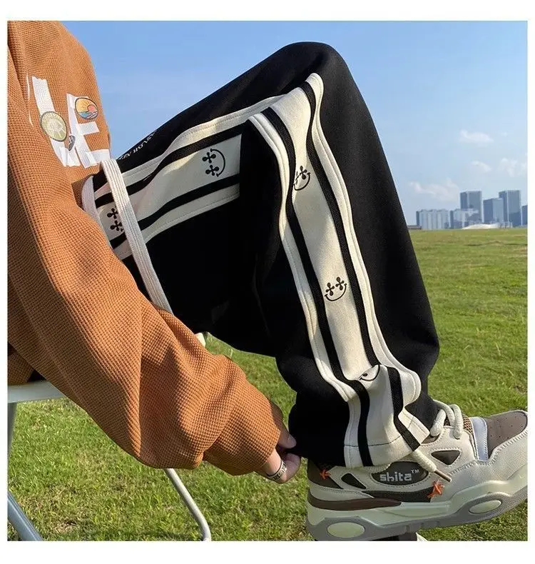 saferido American Vintage Patchwork Contrasting Sports Pants Men's Autumn Print Drawstring Trend Versatile Loose Straight Casual Trousers