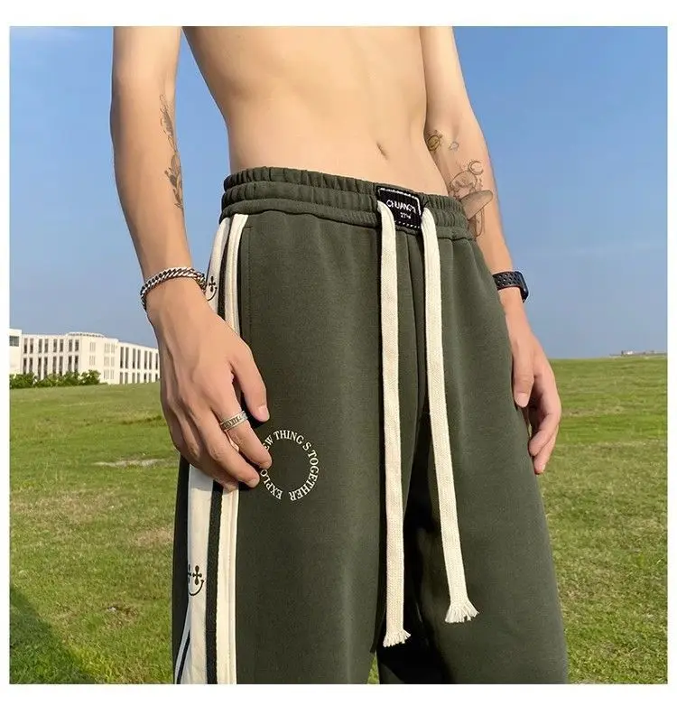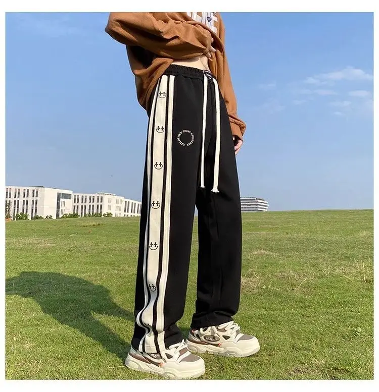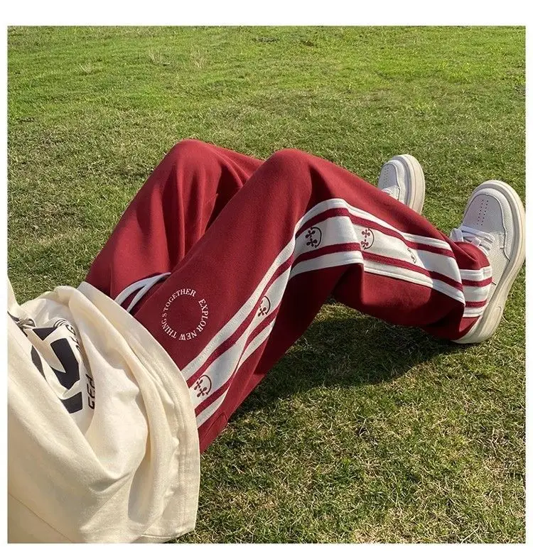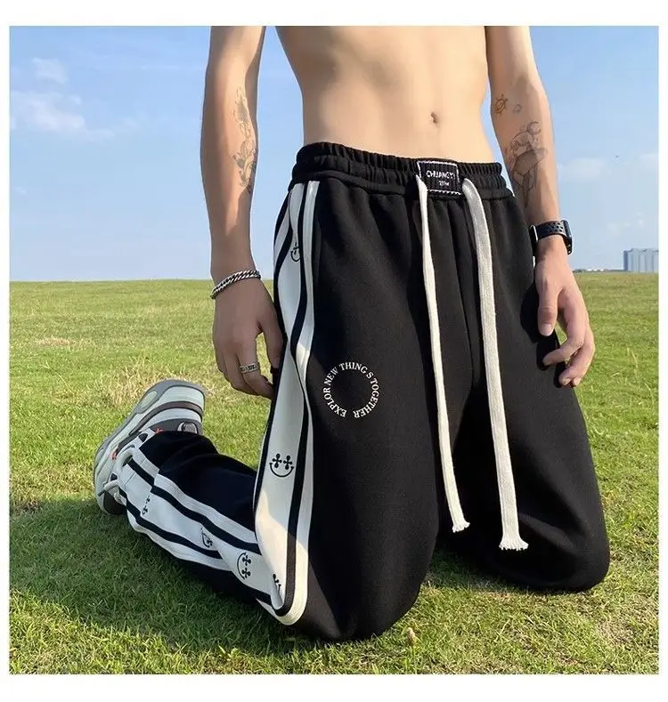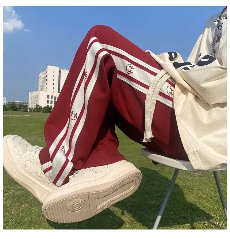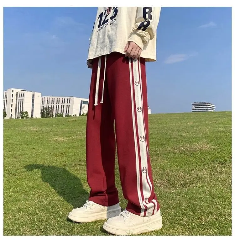 saferido American Vintage Patchwork Contrasting Sports Pants Men's Autumn Print Drawstring Trend Versatile Loose Straight Casual Trousers