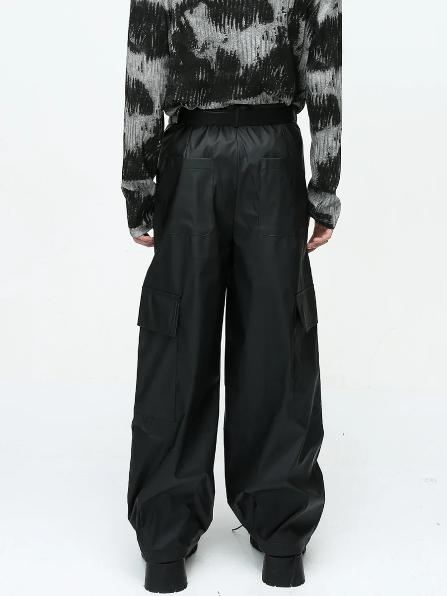 saferido Autumn American style pleated design drape floor mopping niche casual PU leather pants men's trendy pants pantalon homme cuir