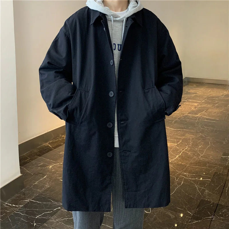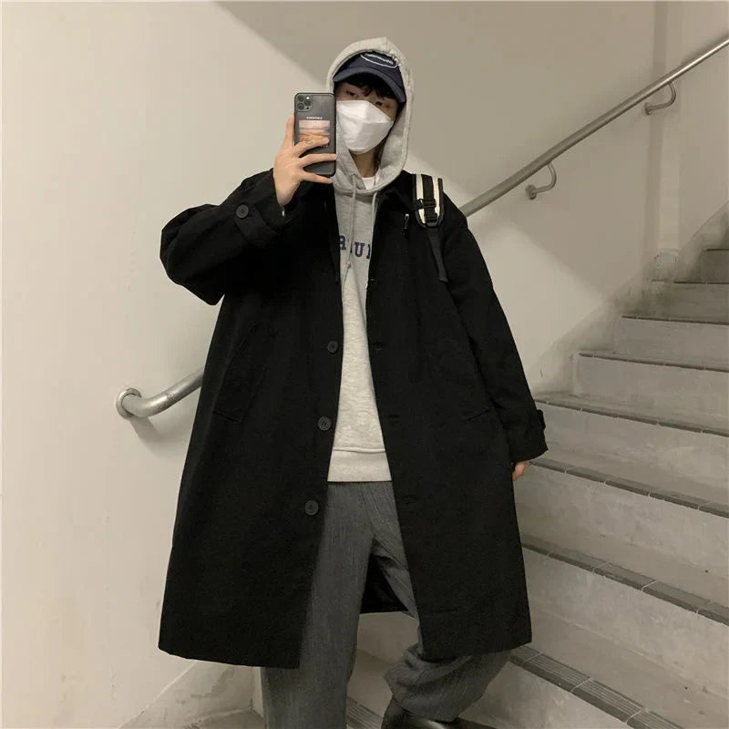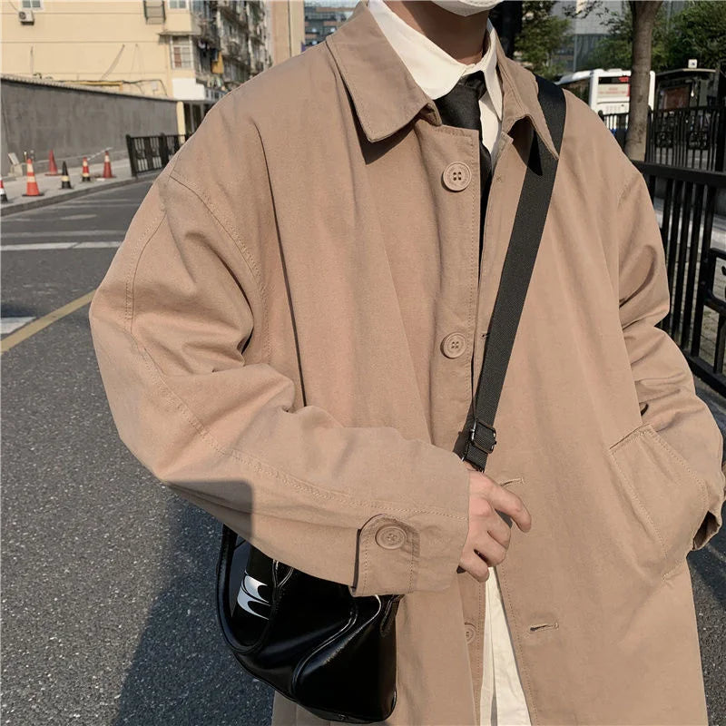 saferido Autumn Khaki/Black Trench Coat Men Fashion Casual Long Coat Men Korean Loose Oversized Windbreaker Jacket Mens Overcoat M-2XL