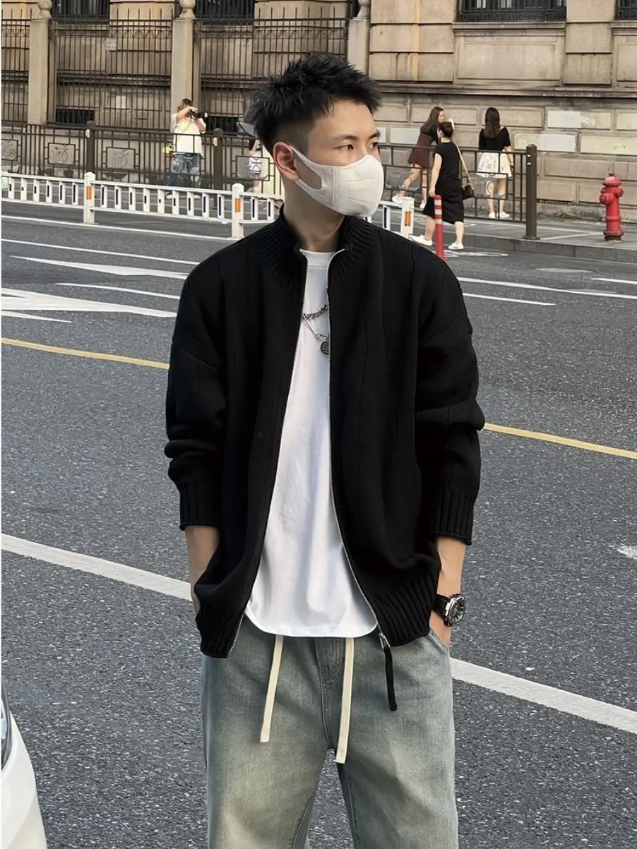 saferido Autumn KPOP Fashion Style Harajuku Slim Fit Outerwear Loose Casual All Match Knitwear Cardigan Solid Zipper Long Sleeve Sweaters