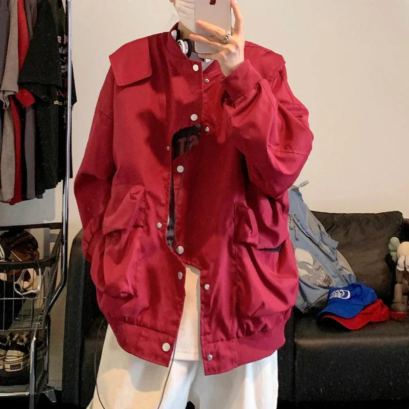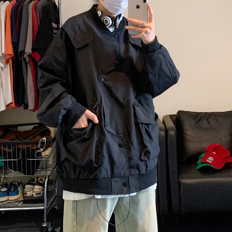 saferido Autumn Men Tactical Stand Collar Jacket Bomber Oversize Baseball Military Coat Streetwear Outwear