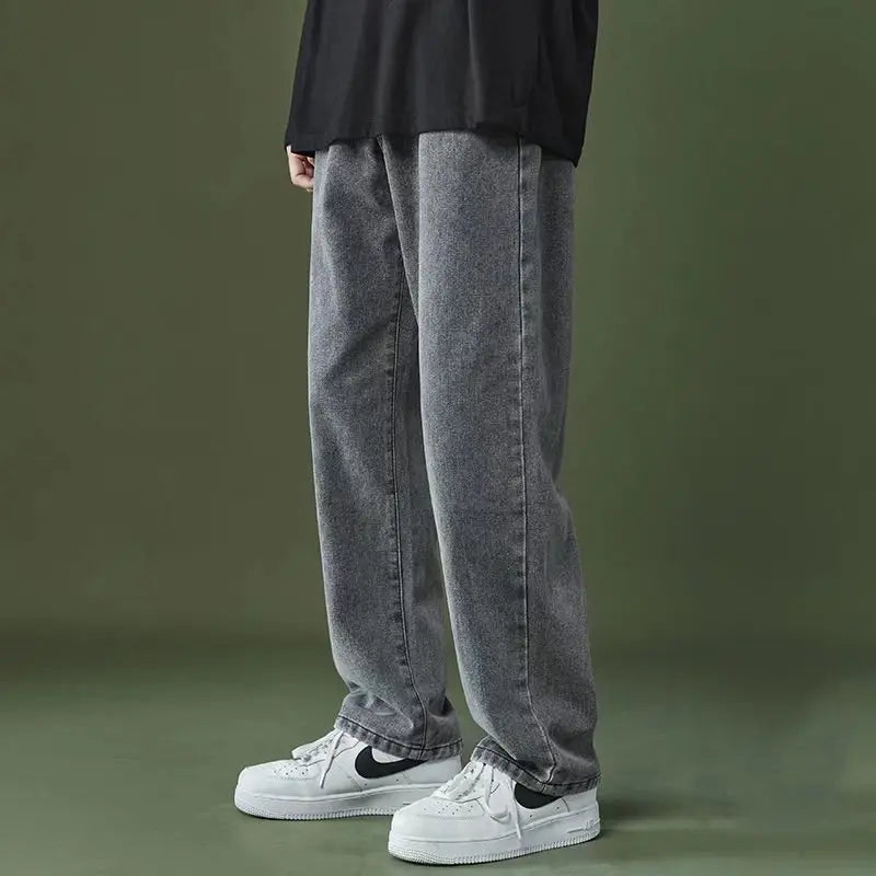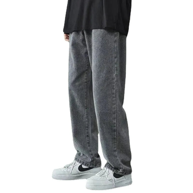 saferido Autumn New Korean Loose Wide Leg Straight Leg Trousers Student Fashion Casual Long Pants Grey Men's Jeans