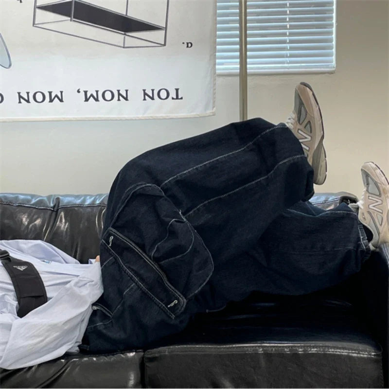 saferido Baggy Cargo Jeans big pocket Trousers Male Denim Pants Wide Leg Pant women's Jeans Loose Casual Streetwear Hip Hop Harajuku