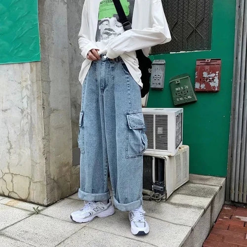 saferido Baggy Jeans Trousers Male Denim Pants Black Wide Leg Pants Men's Jeans Oversize Cargo Korean Streetwear Hip Hop Harajuku