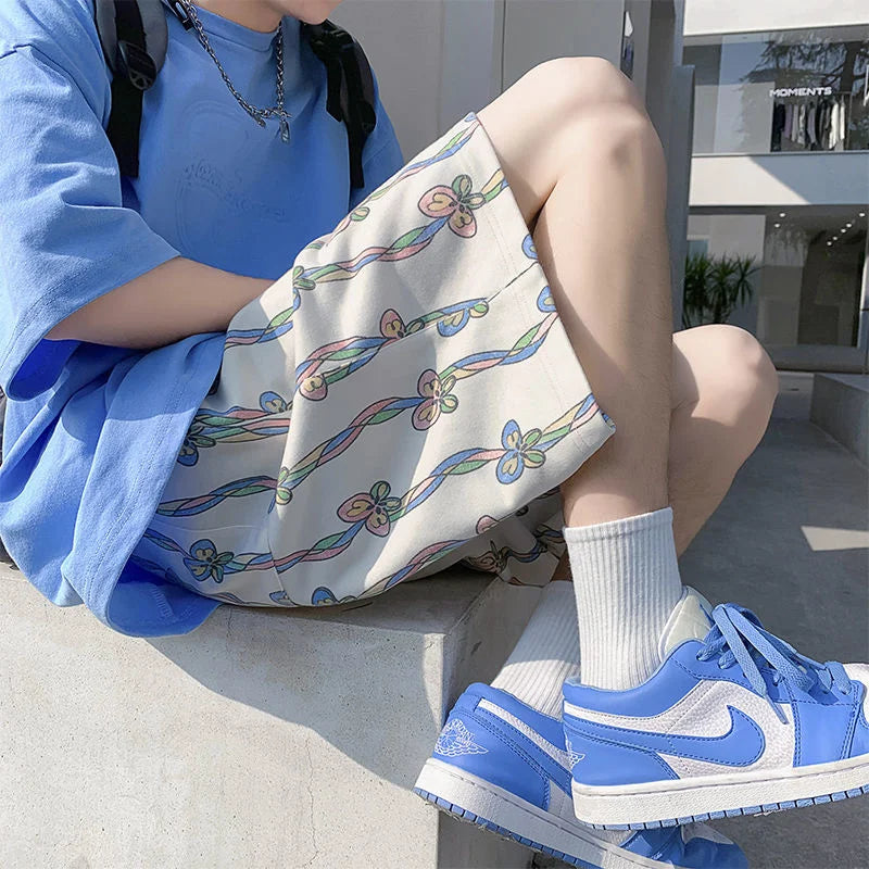 saferido Beach Printed Casual Short Pants Men's Thin Street Hip Hop Trend Fashion Sports Loose Straight Shorts Oversize Summer Clothes