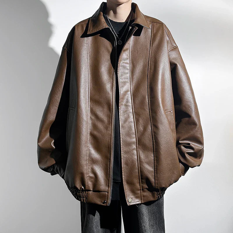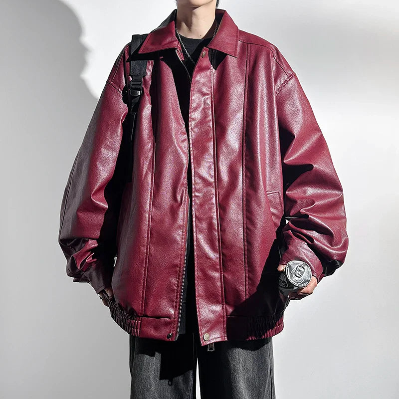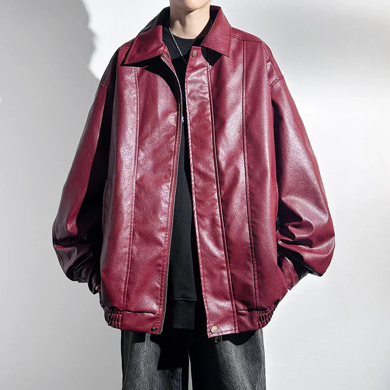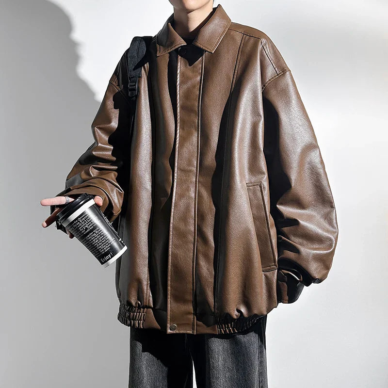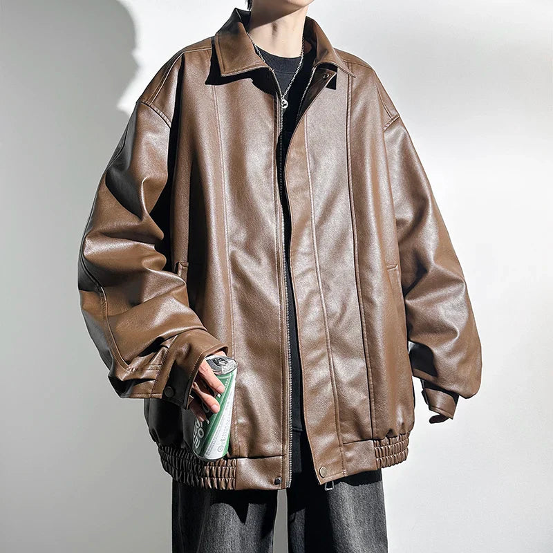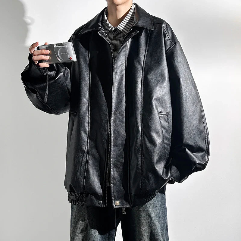 saferido Black Faux Leather Zip Up Jacket Men Autumn Unisex Clothes Windproof Jacket PU Leather Male Oversize Korean Streetwear Coats