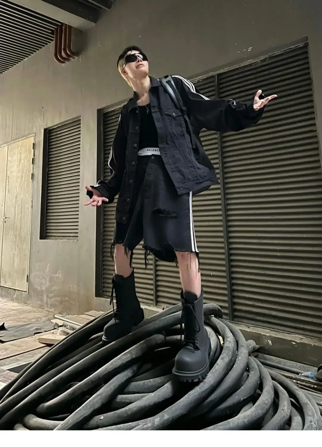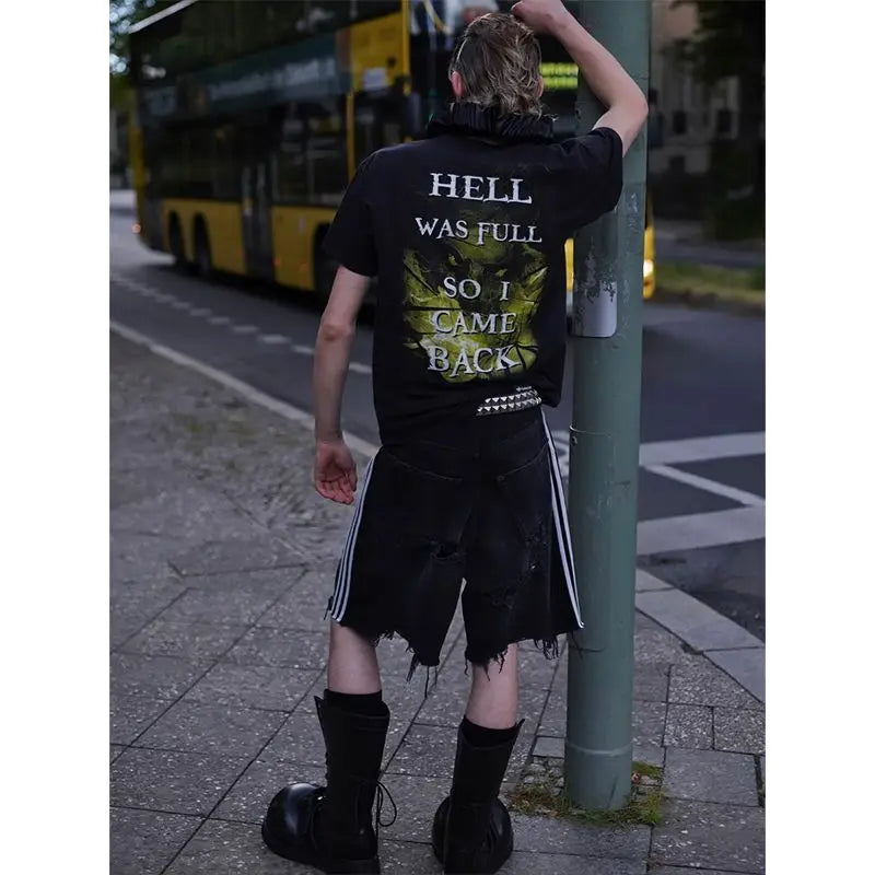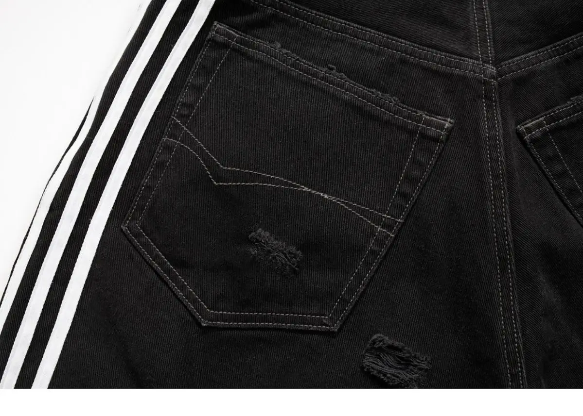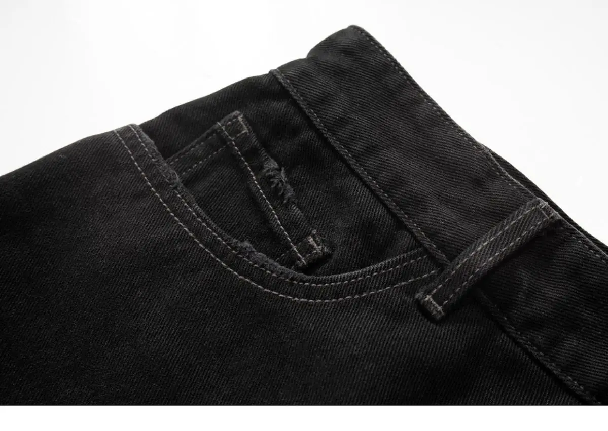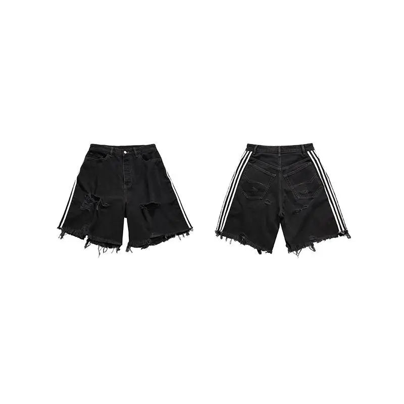 saferido Black Hip-hop Hole Beggar Jeans Shorts Men's American Street Washed Old Loose Five-part Pants Streetwear Men Y2k Clothes Pants