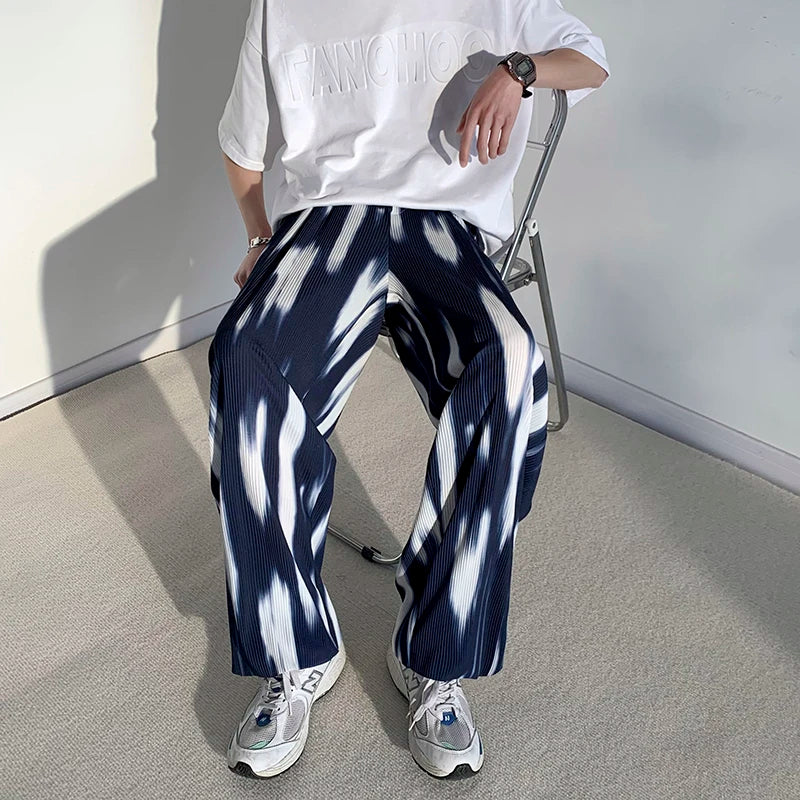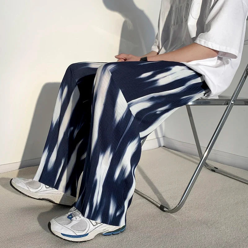 saferido Black Tie-dye Wide-leg Pants Men's Summer Loose Straight Ice Silk Drape Casual Pants Korean Style Pleated Pants Men Y2k
