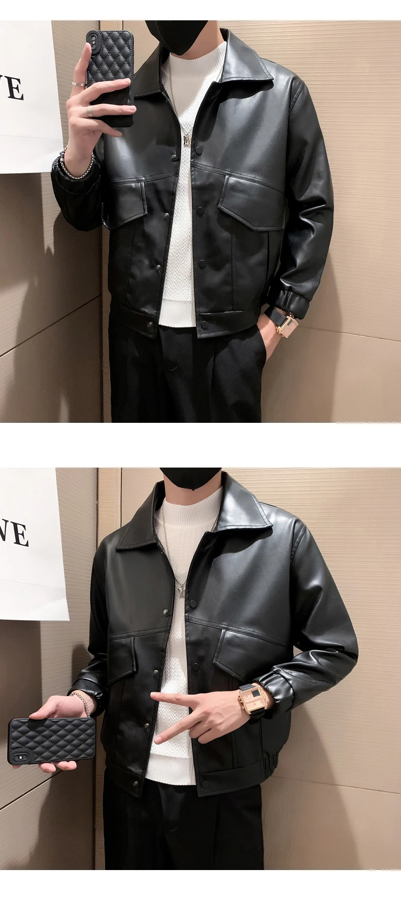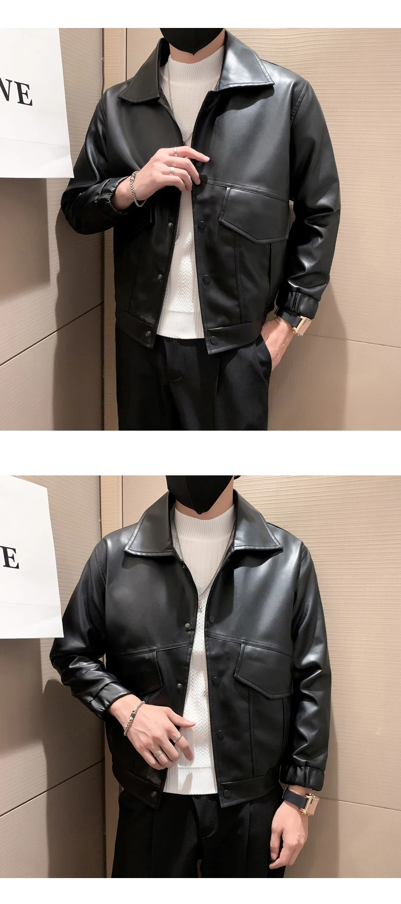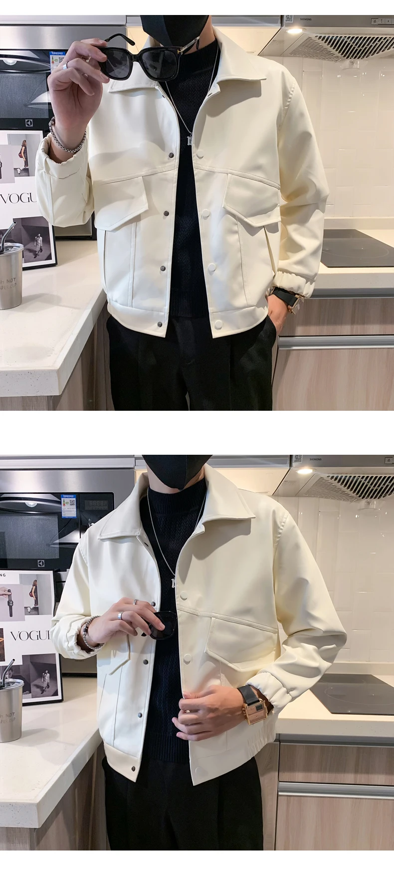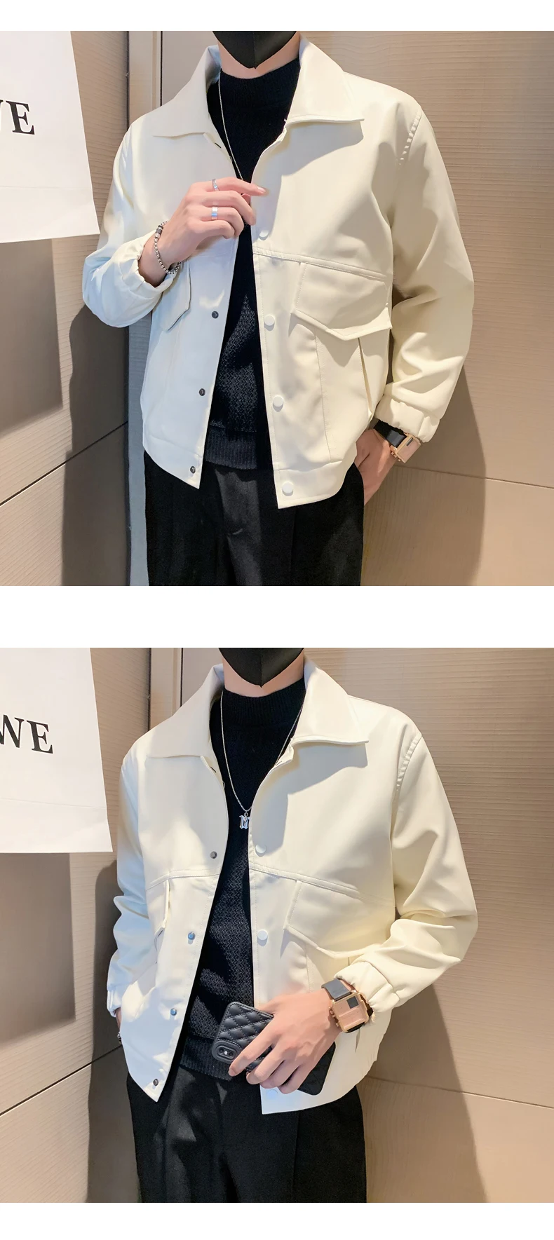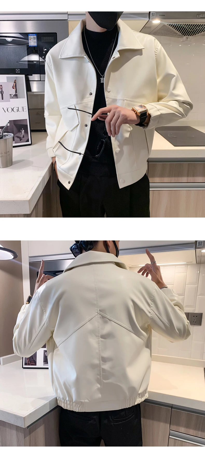 saferido Black White PU Jackets Men Spring Autumn Leather Jacket Coat Male Fashion Casual Motor Biker PU Leather Coat Big Size 3XL-M