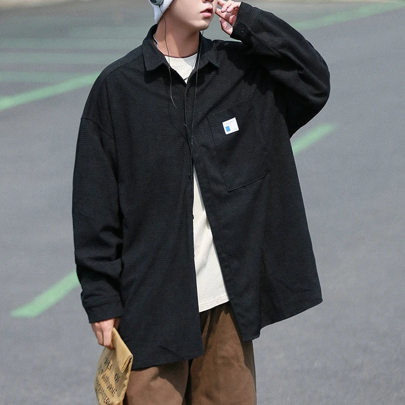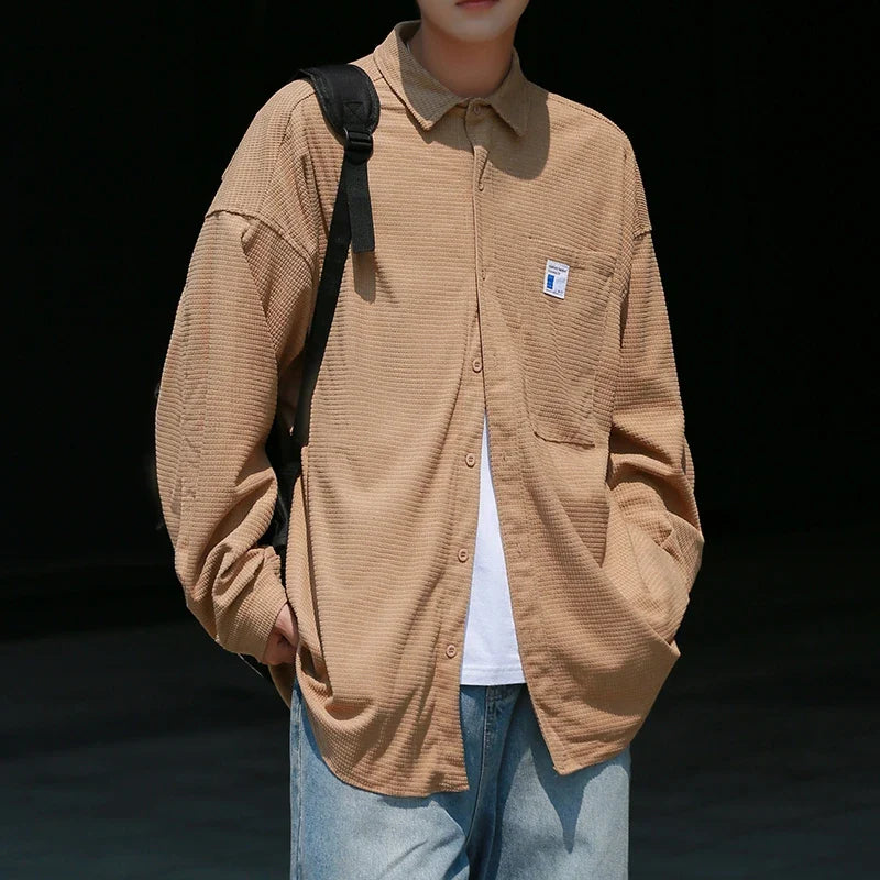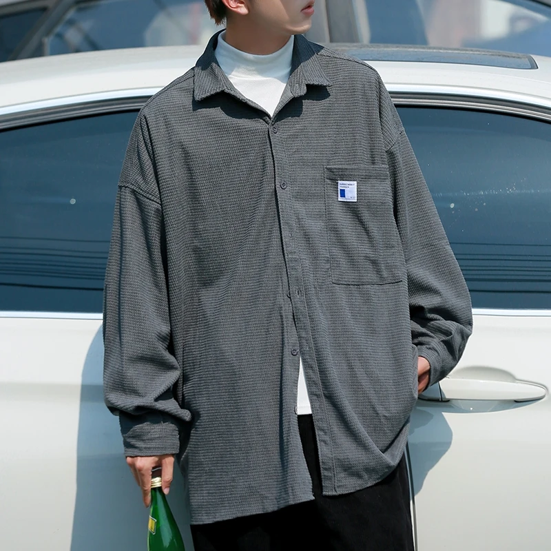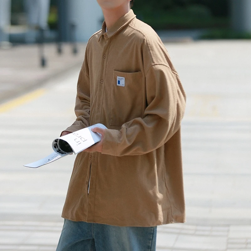saferido Blue Minimalist Shirts For Men Korean Style Solid Long Sleeve Turn Down Collar Shirt Comfortable Blouses Casual Plus Size