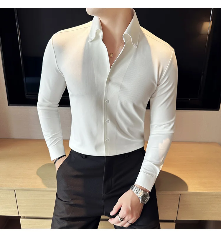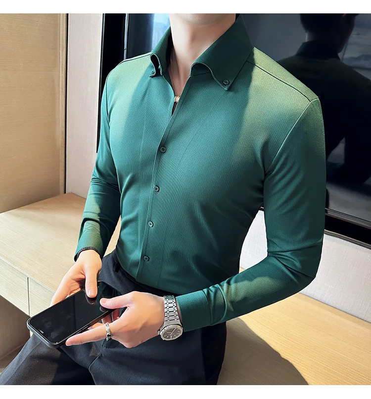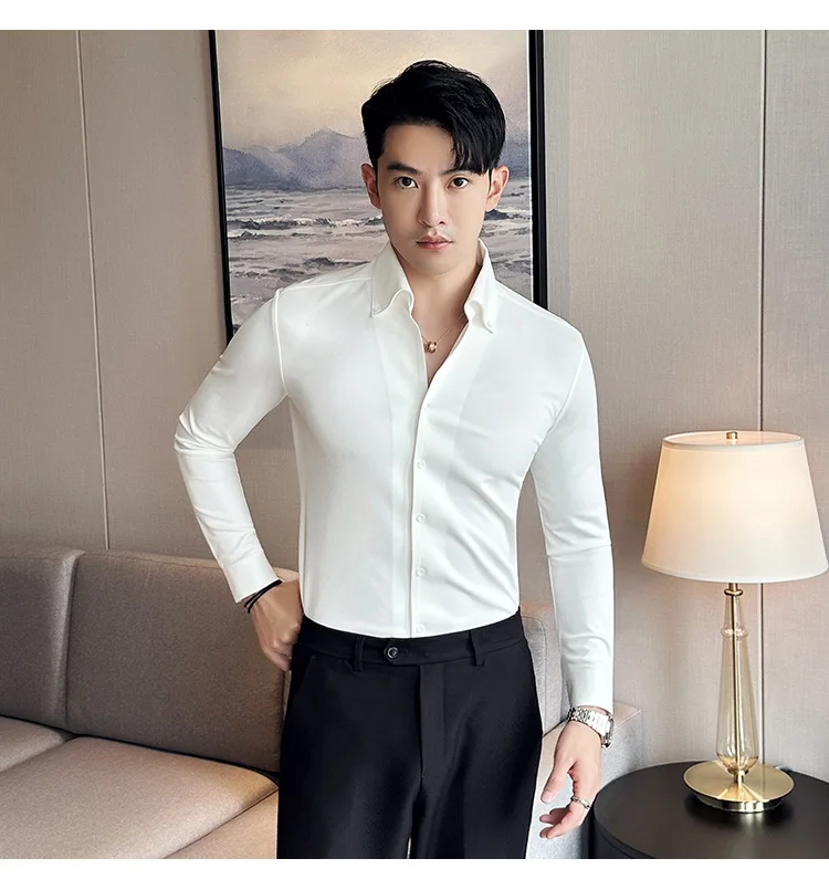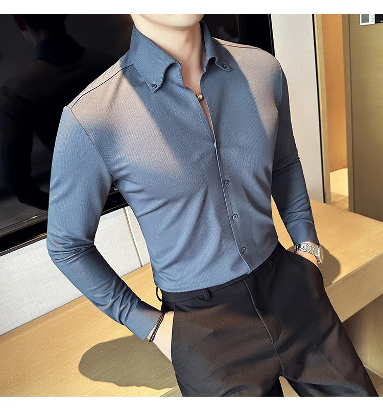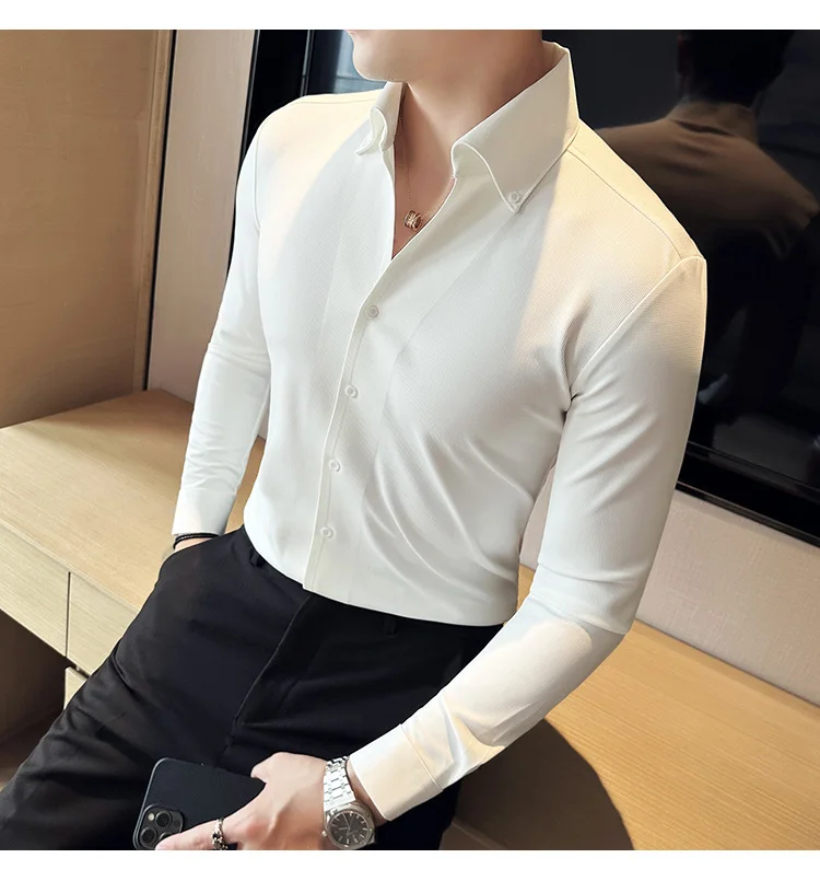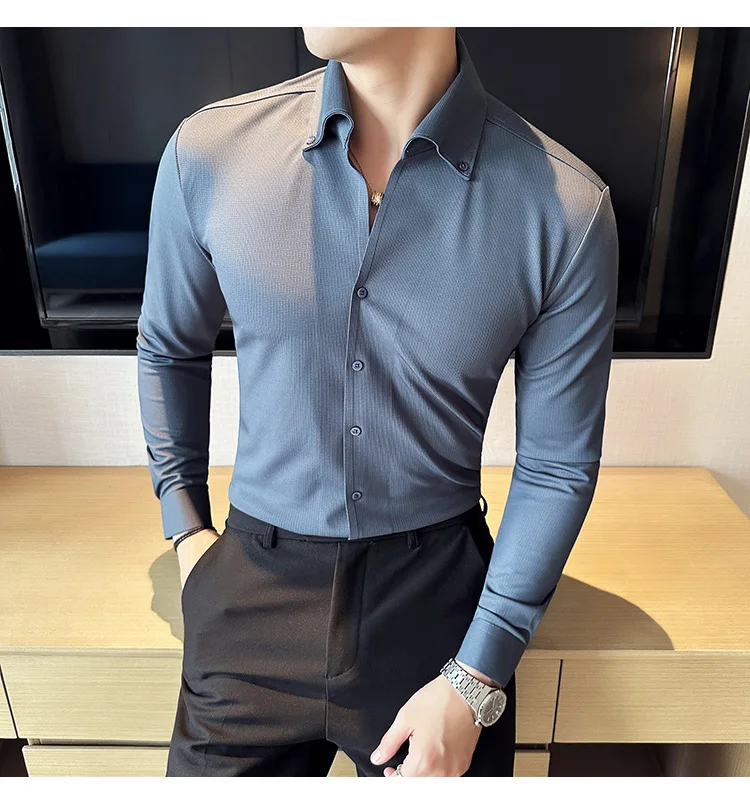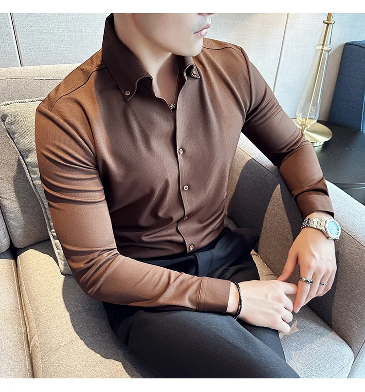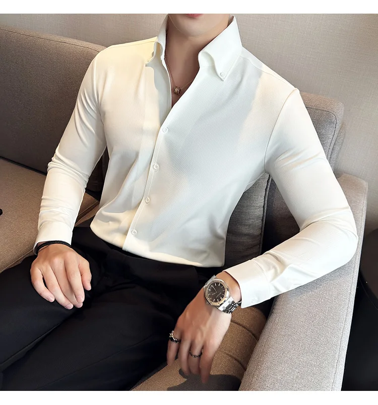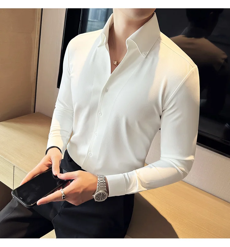 saferido Brand Clothing Men's Spring High Quality Long Sleeve Shirts/Man Slim Fit Fashion Casual V-neck Office Dress Shirt 4XL-M