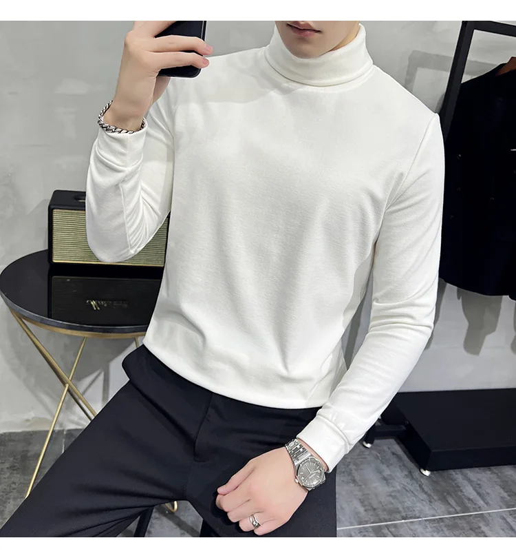 saferido British Quality Leisure Men Long Sleeve T-shirt/Male Slim Fit High Quality High Collar Fashion T-shirt/Man Spring Pullover