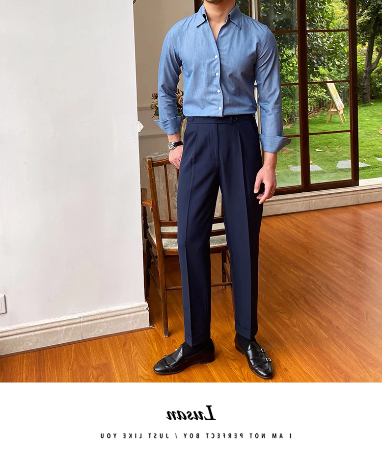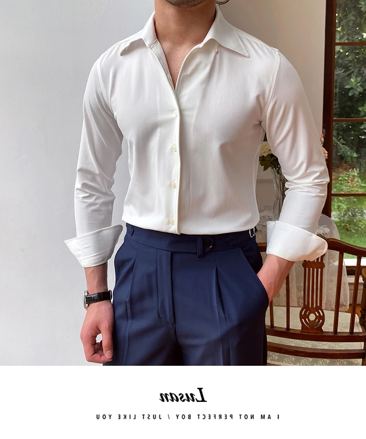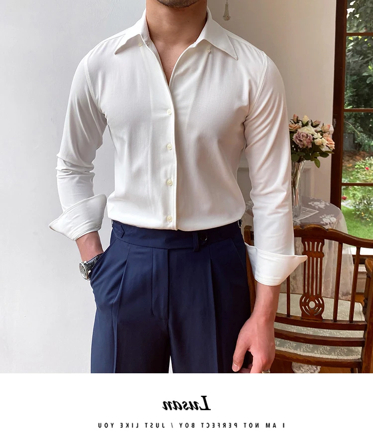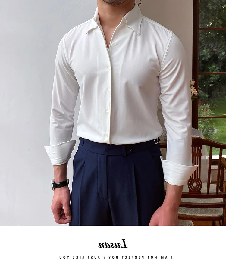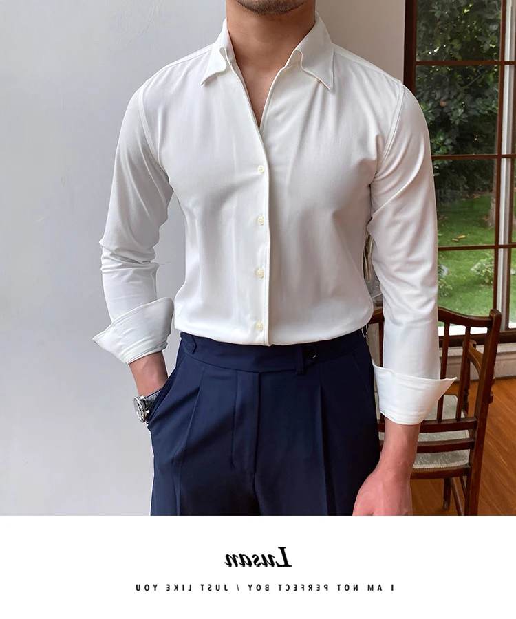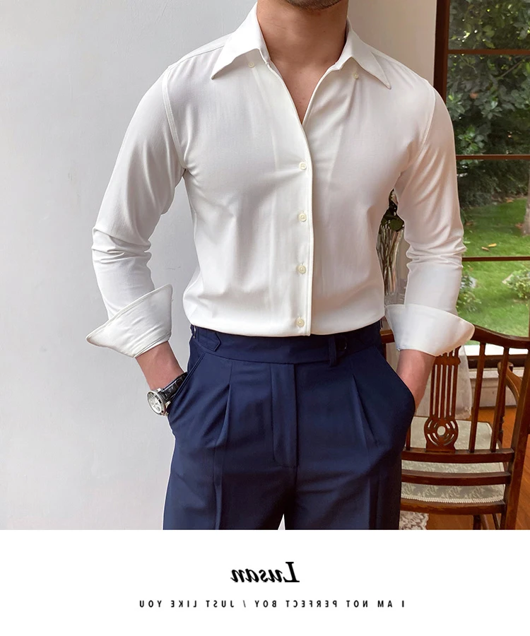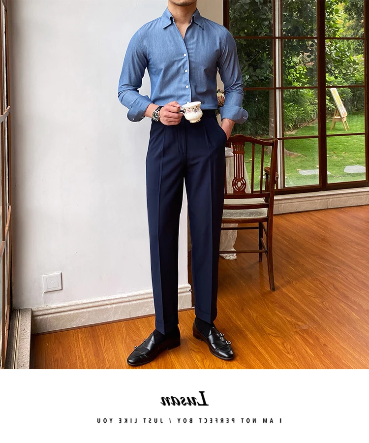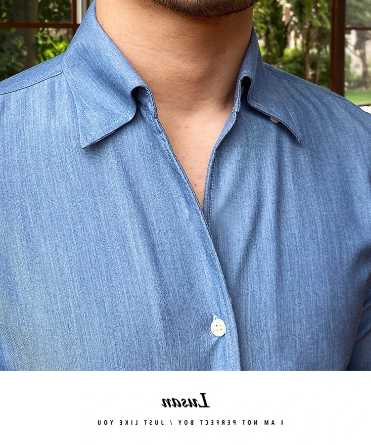 saferido British Style Casual All-match Solid Color Summer Shirt Trendy Denim Blue Business Formal Dress Shirt Long Sleeve Shirt Men