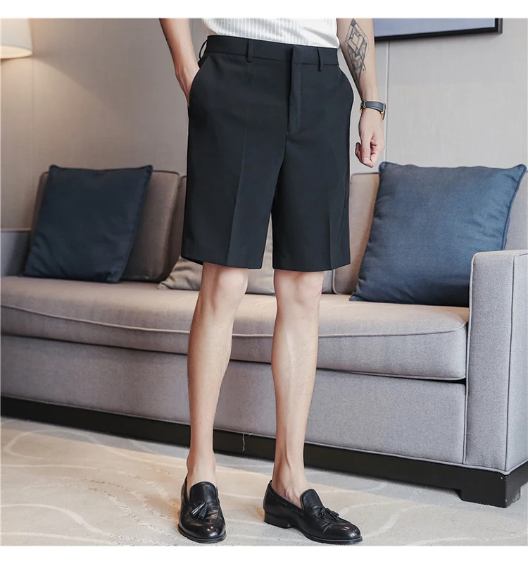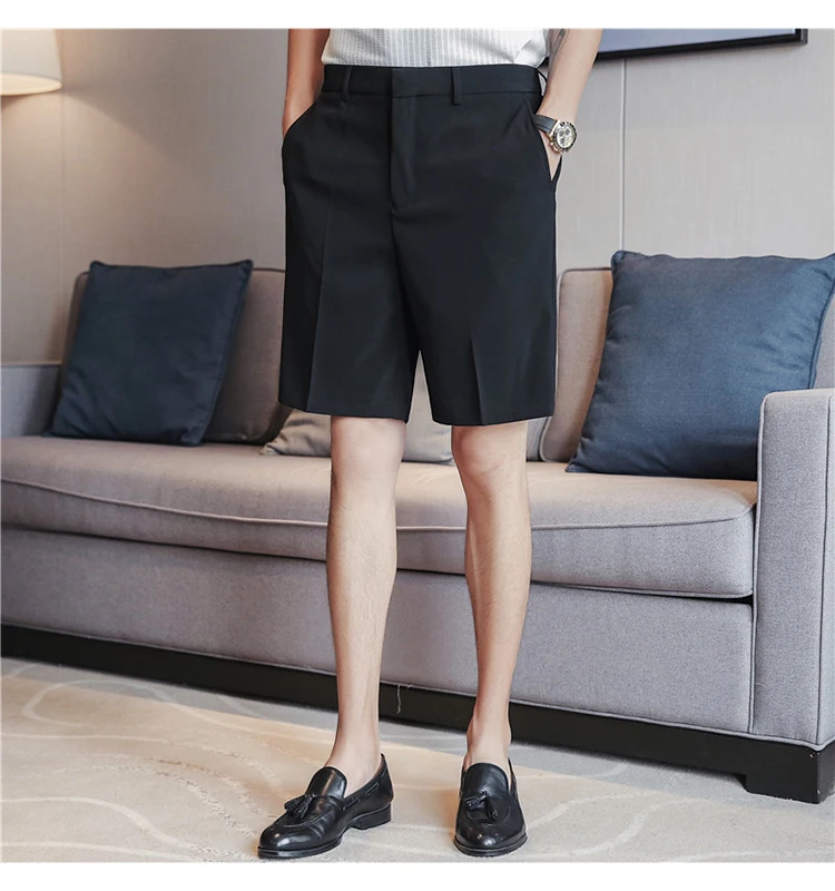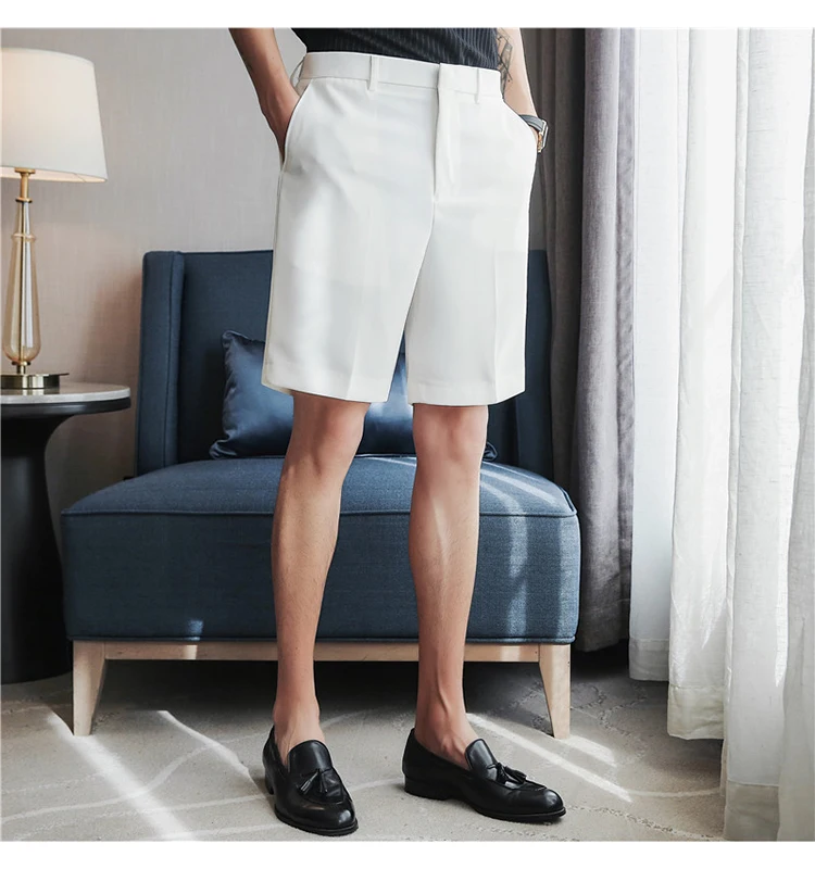 saferido British Style Men's Summer Business Leisure Shorts/Male Slim Fit Loose Suit Shorts/White Blue Black Plus Size S-2XL