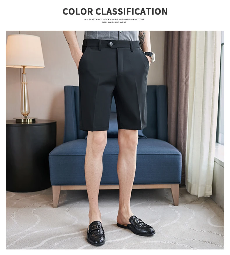 saferido British Style Men's Summer Casual Shorts/Male Slim Fit Business Fashion Suit Shorts Plus Size 28-36