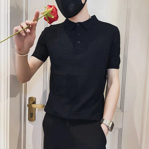saferido British Style Summer Leisure for Men Short Sleeves Polo Shirts/Male Slim Fit Fashion Plaid Business Polo Shirts
