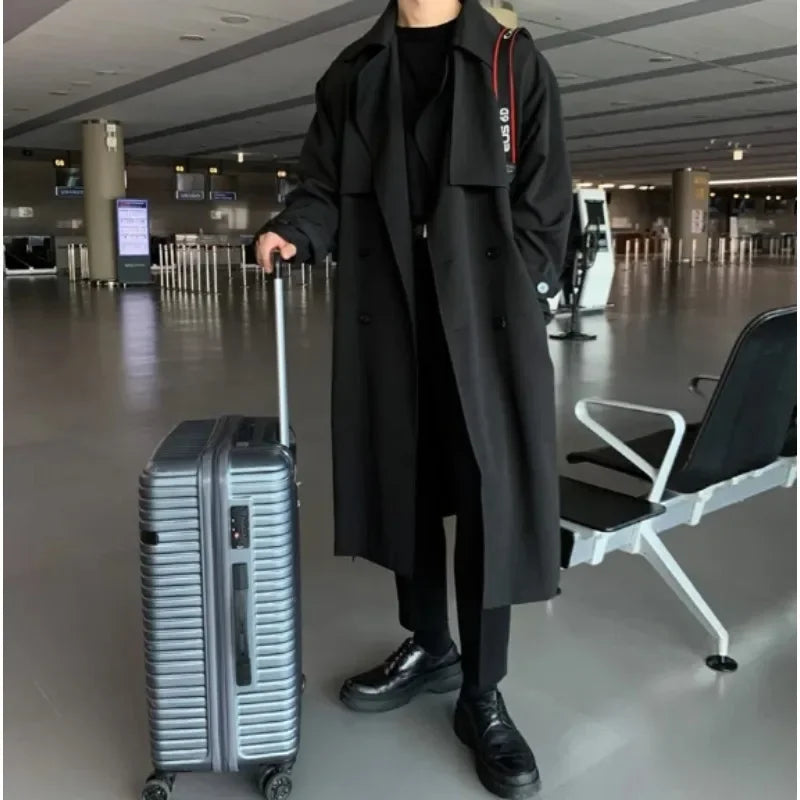 saferido British Style Trench Men Solid Double Breasted Oversize Long Coats Stylish Outwear Hombre Korean Style Streetwear BF Windbreaker