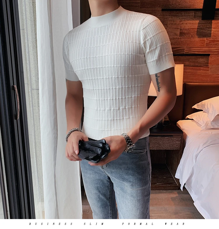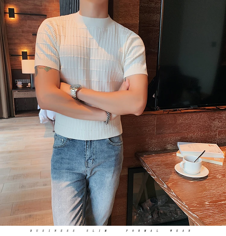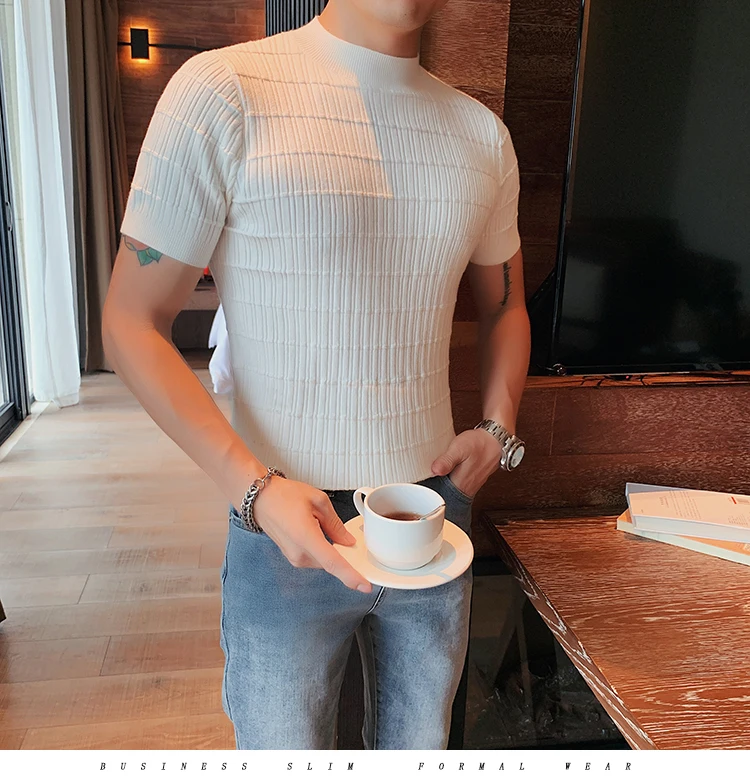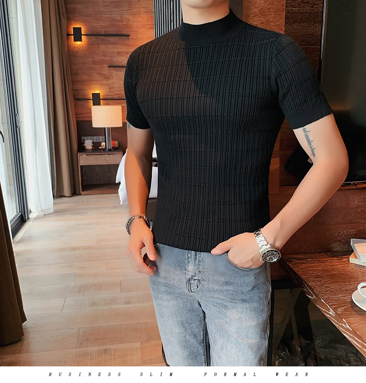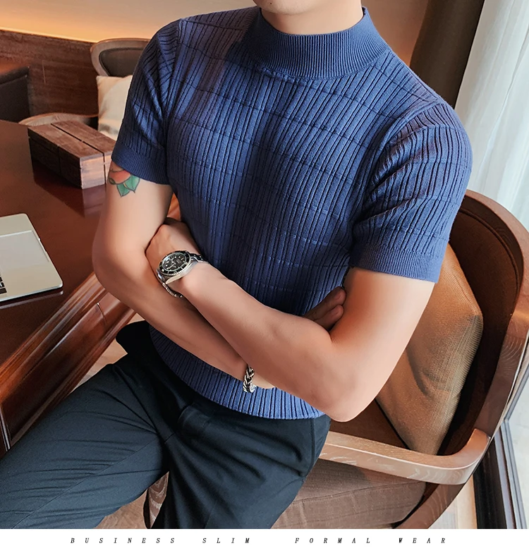 saferido Clothing Men Spring High Quality Short Sleeve Knit Sweater/Male Summer High Collar Knit T-Shirts Plus Size S-3XL