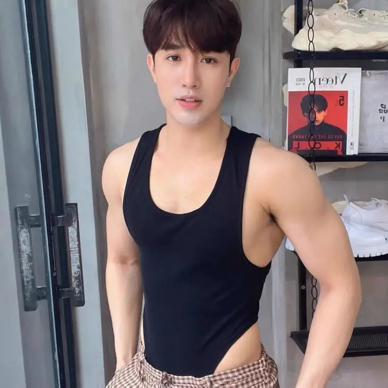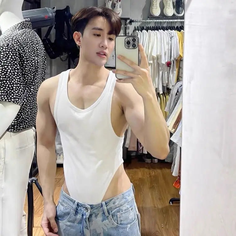 saferido Comfortable Printing Men's Homewear New Round Neck Slim Casual Tank Tops Korean Style Personality Motion Bottoming Shirt