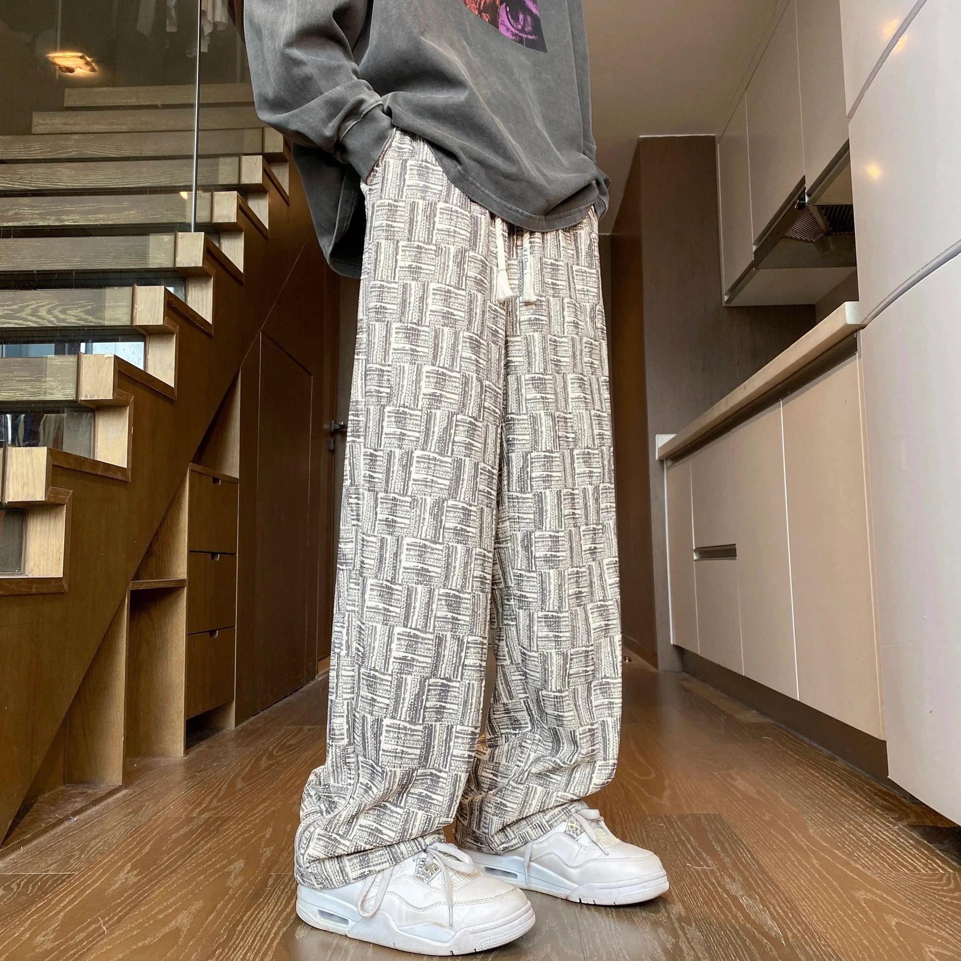 saferido Corduroy Casual Pants For Men Autumn Style American Fit Loose Fit Leg Sweatpants Personality trend Straight Leg Pants