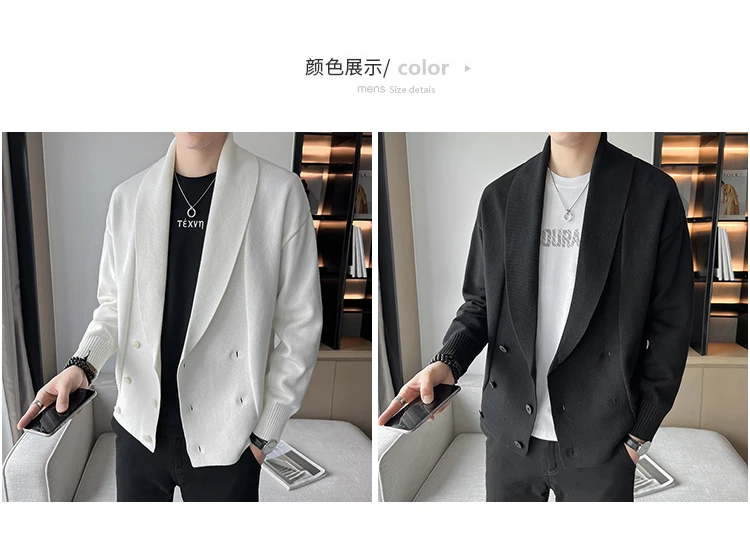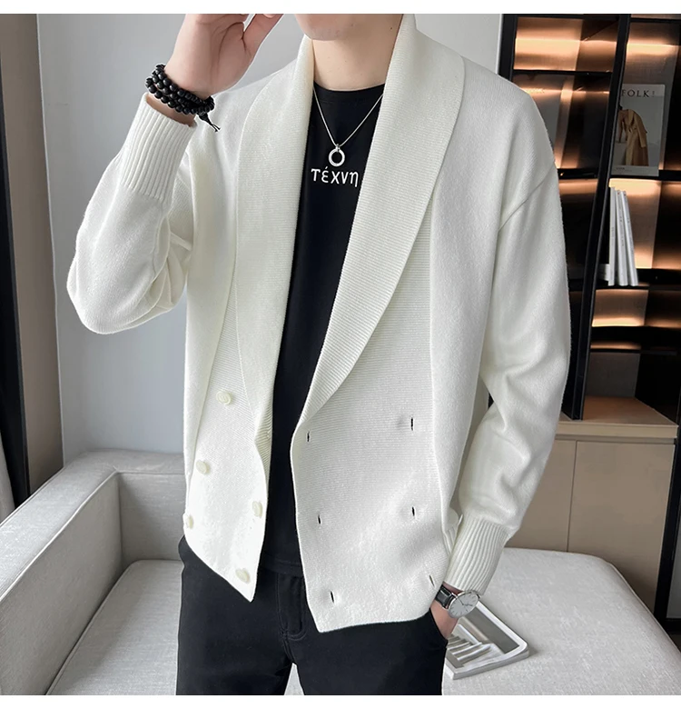 saferido Double-Breasted Cardigan Sweater Men Spring Clothes Knitted Sweater Coat Pure Color Men Casual New Slim Fit Brand Clothes