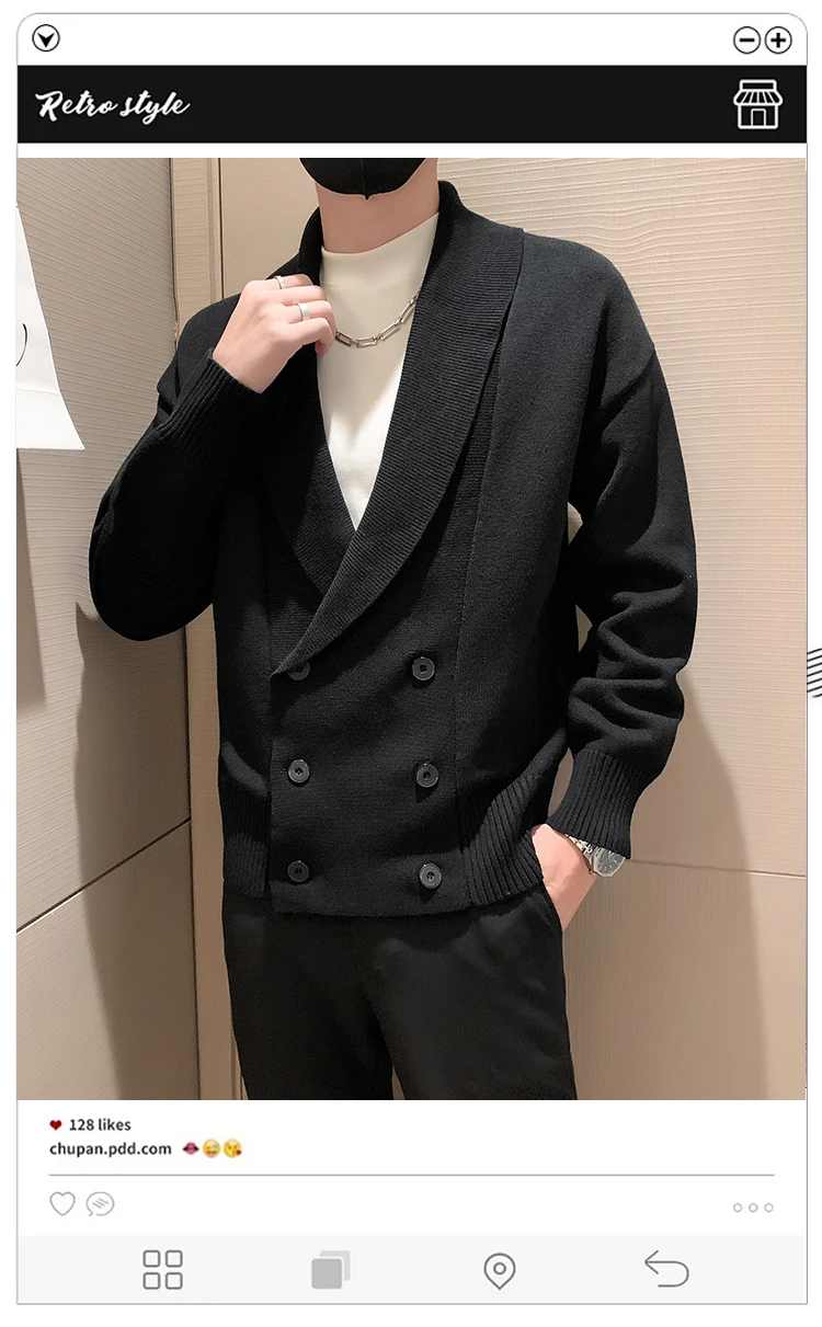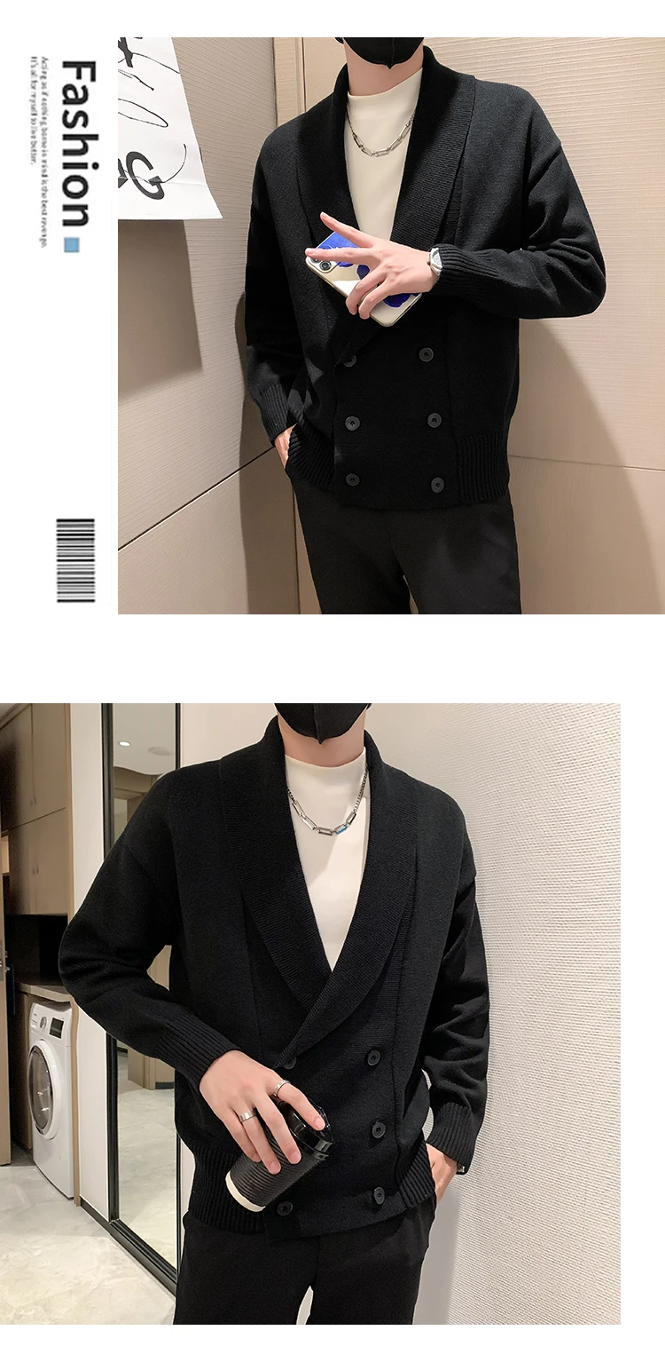 saferido Double-Breasted Cardigan Sweater Men Spring Clothes Knitted Sweater Coat Pure Color Men Casual New Slim Fit Brand Clothes S-3XL
