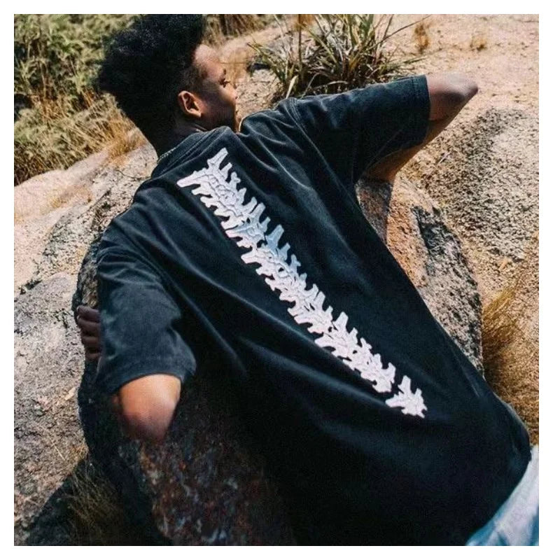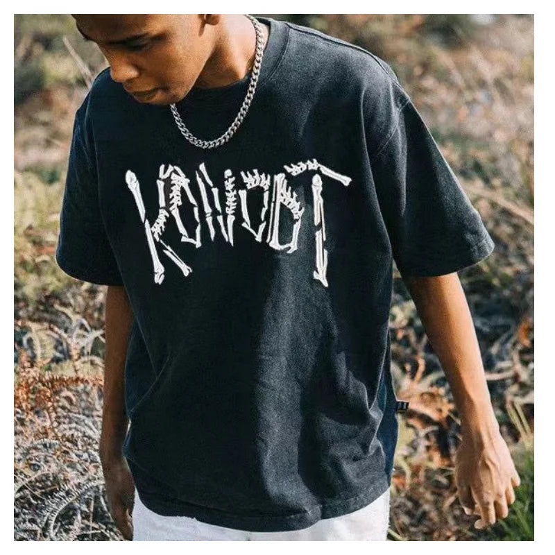 saferido Fashion Retro Skeleton Top Cotton Loose Casual Short Sleeve T-shirt Men's American Style