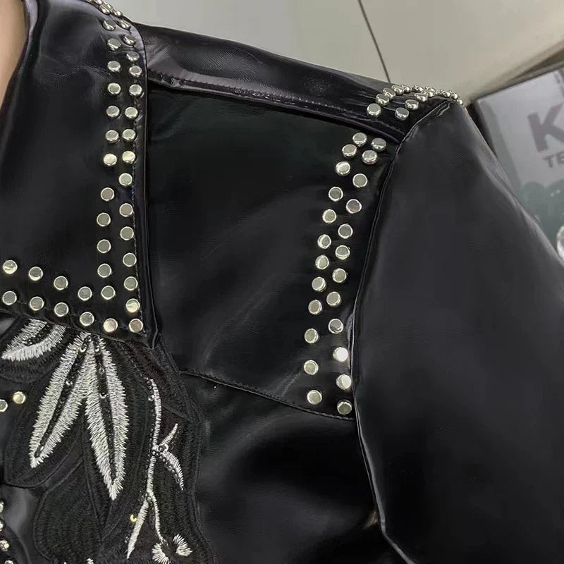 saferido Faux Leather Jacket Men Black Embroidered Pattern Coat Casual Korean Style Chaquetas Hombre Motorrad Jacke Zipper Lapel Jacket